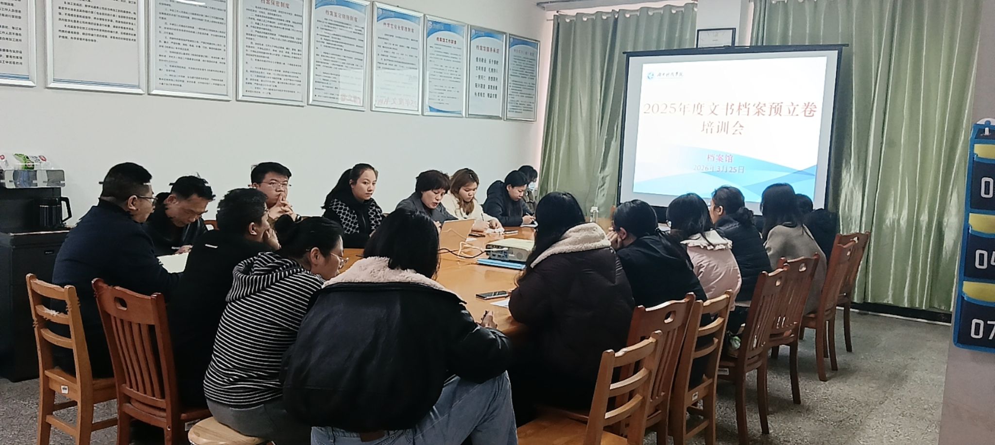 本网讯(通讯员 贾丽君)为进一步做好2025年度文件材料归档立卷工作,提升学校档案管理规范化水平,3月25日上午,在档案馆二楼大厅举办归档立卷专题培训会。校内机关、教辅各部门新任综合办主任及相关人员参加培训。