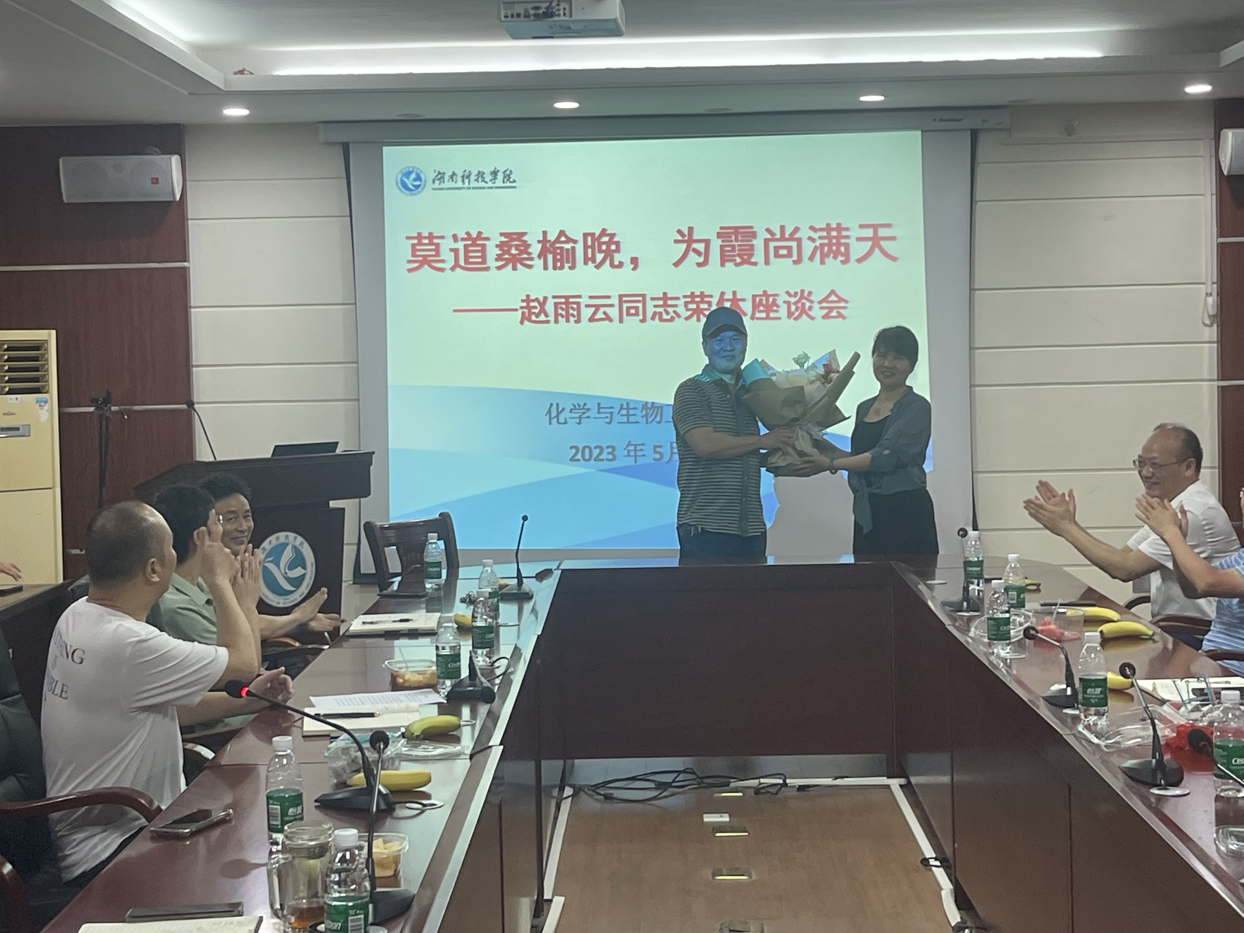 本网讯(通讯员 刘乐 李一璇)莫道桑榆晚,为霞尚满天。5月23日,化学与生物工程学院在逸夫楼320会议室举行了赵雨云教授荣休座谈会。学院院长覃佐东、学院副院长刘芳、党总支书记曾二青、党总支副书记基艳及学院教师代表参加座谈。