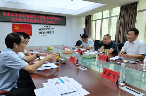 本网讯 (肖新生)9月23日,化学与生物工程学院院长覃佐东教授带领学院肖新生博士等前往永州市科技局,参加“木本油料资源利用国家重点实验室永州分中心”筹建工作会议。