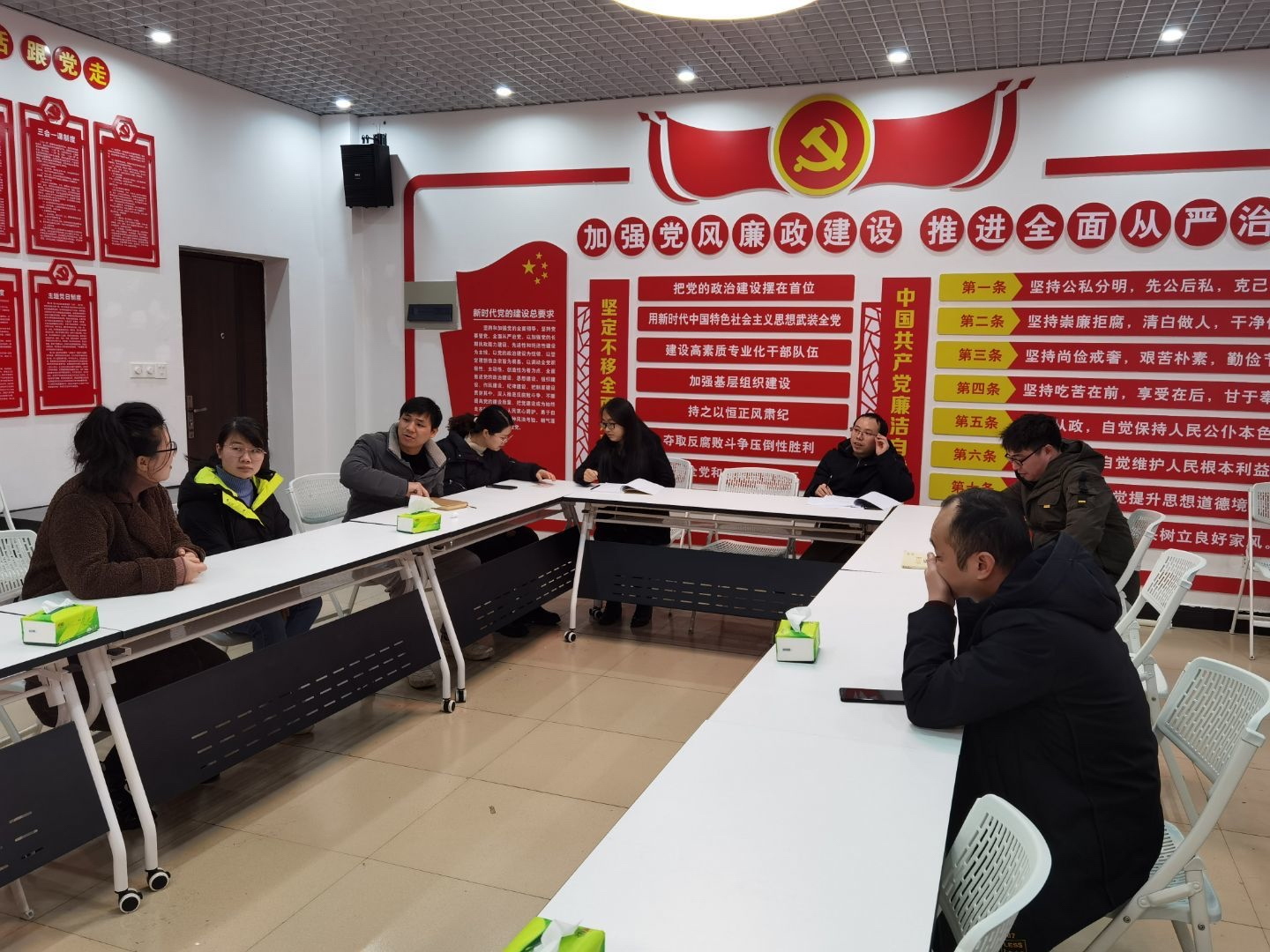 1月11日,化学与生物工程学院教工第一党支部在逸夫楼415党员活动室召开全国样板支部验收工作推进会议。