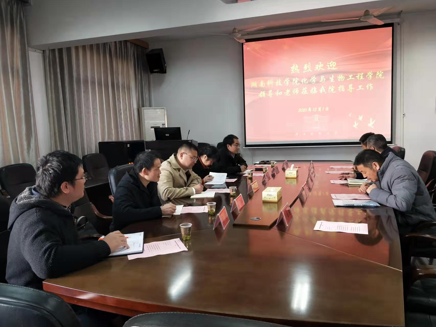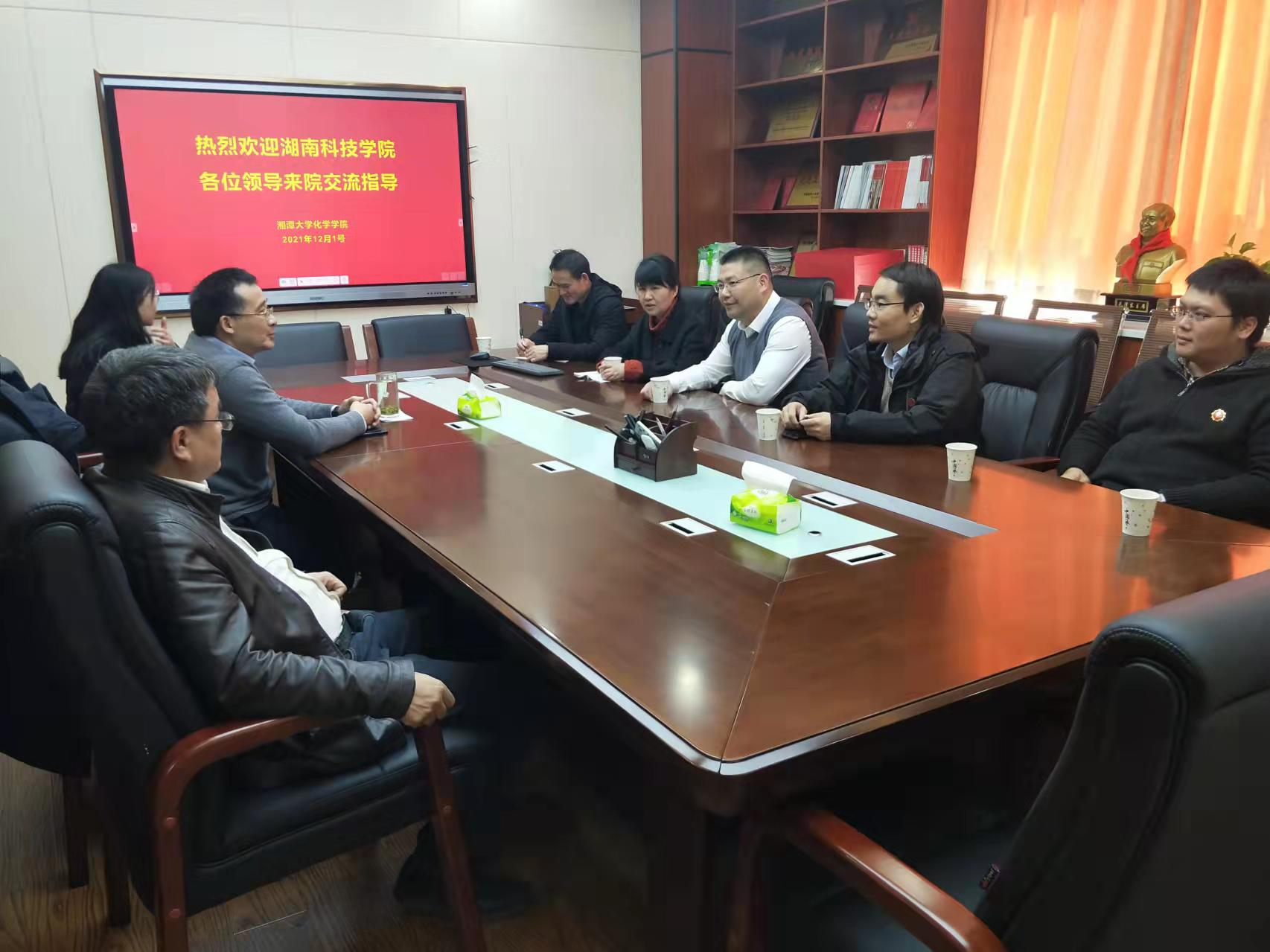 (本网讯)11月30日至12月1日,化生学院副院长刘芳、覃佐东、尹业师等一行6人前往湘潭大学化工学院、化学学院、湖南科技大学化学化工学院、湖南工程学院化学与材料学院交流考察。湘潭大学化工学院院长游奎一、副院长易争明、郝芳、化学学院院长裴勇、副院长彭圣明、张雪飞,湖南科技大学化学化工学院党委书记周文革、副院长张培盛,湖南工程学院化学与材料学院院长邓继勇、党委书记张何、副院长张儒等出席交流会。与会双方就工科专业认证、研究生联合培养、实验室管理和建设改造等方面进行了深入的交流与探讨,会后参观学习了相关实验室,双方将进一步加强沟通交流与合作,为学院快速发展搭建更好的合作平台。