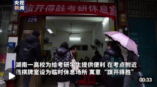 12月25日,2022年全国硕士研究生招生考试正式开考。为了给考生午休时提供一个舒适的休息场所,位于湖南永州的2026世界杯官方合作网站想出了一个暖心的办法:在距离考点不到100米的居民区内,租下三间棋牌室,让考生们中午在这里取暖休息、安心备考。