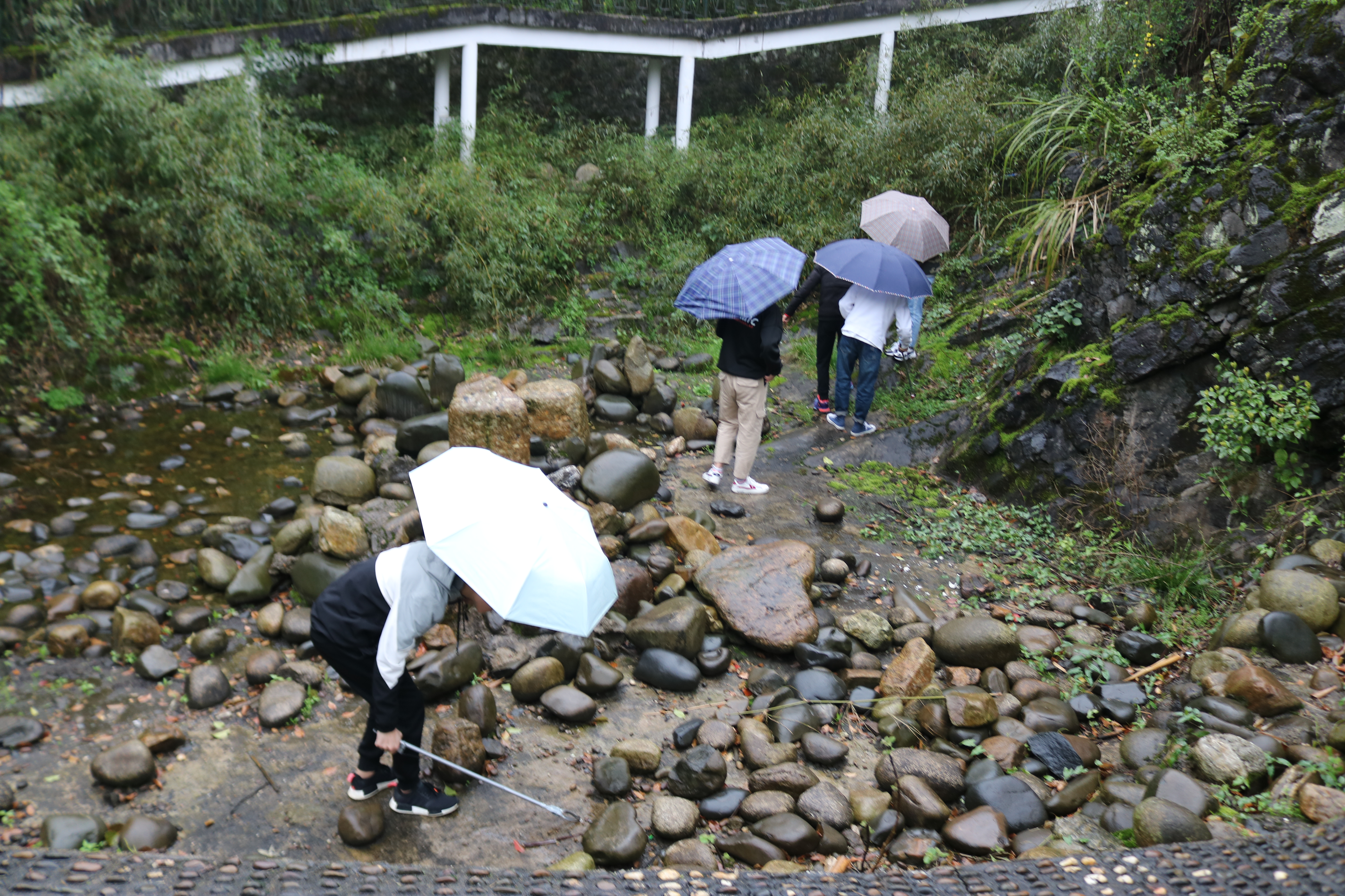 志愿者们冒雨在公园门口集合,领取捡拾工具和垃圾袋后,分成三组进行清扫工作。随着时间的推移,四处散落的垃圾被不断拾起,取而代之的是满眼的葱绿。尽管雨越下越大,志愿者们依然兴致高涨,细心的清扫,不断重复着简单的捡拾动作,不留死角。淋湿的衣袖、瑟瑟的寒风与他们脸上明快、兴奋的笑容形成鲜明对比。