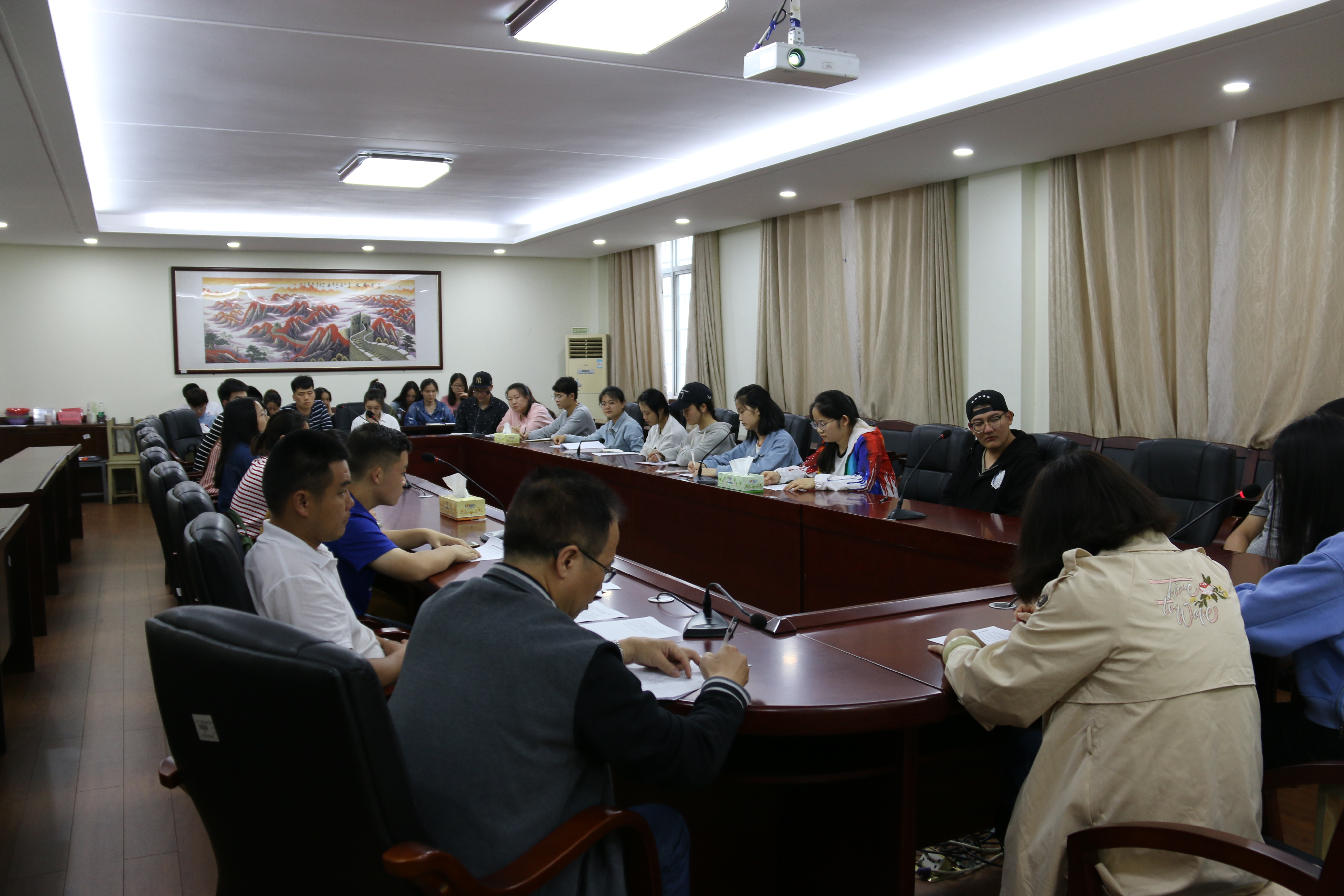 本网讯(通讯员 周闻名 李劲)2018年5月7日下午,化学与生物工程学院在逸夫楼320召开团学干部会议,深入学习习近平总书记5月2日在北京大学师生座谈会上学习交流会。学院党总支书记赵雨云、副书记高丹、全体辅导员及所有团学干部共60余人参加,会议由分团委书记周闻名老师主持。