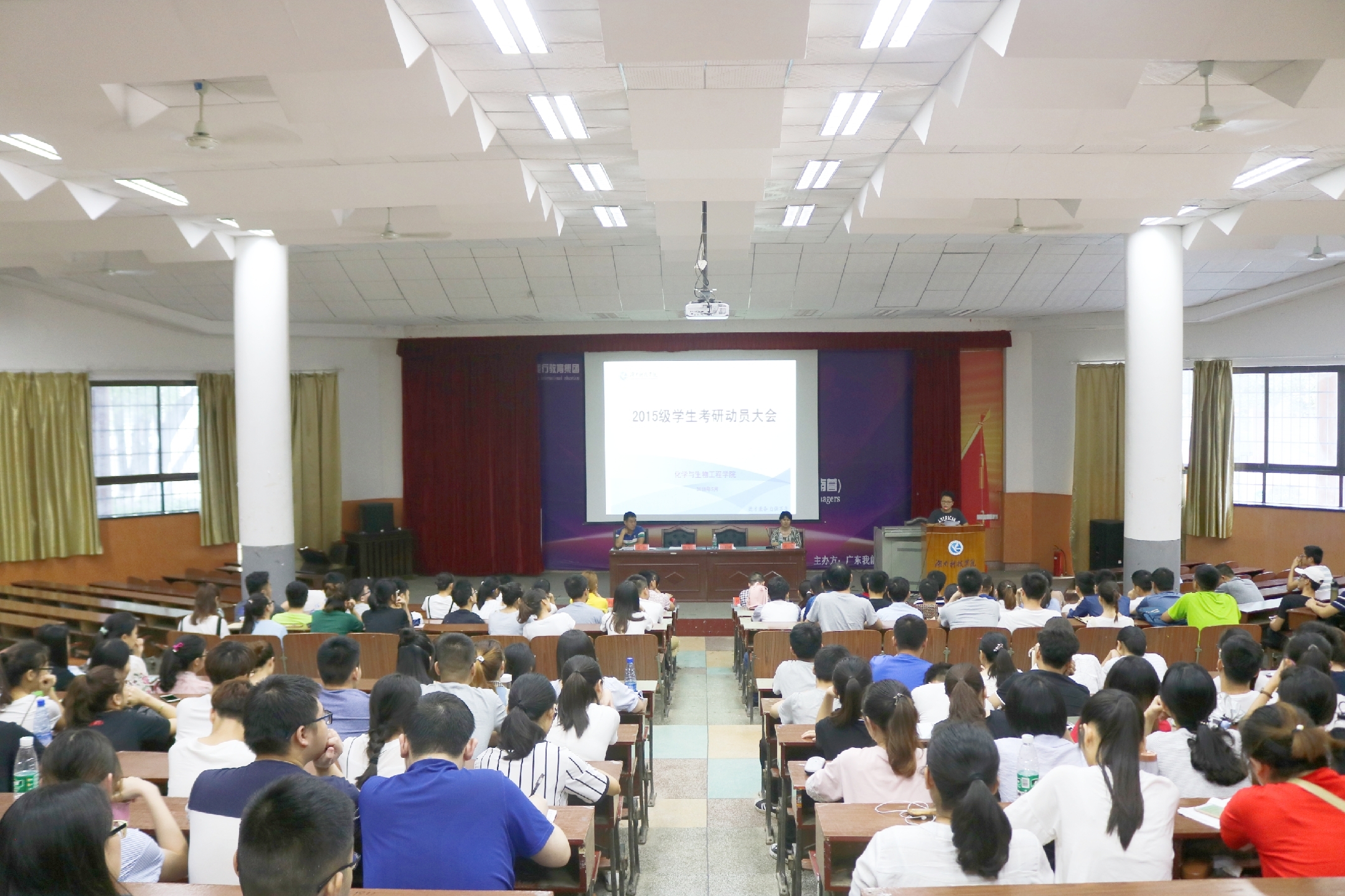 实习动员会后,又在有意参加2019年研究生入学考试的139名同学中召开了考研动员大会。大会邀请青年教师唐海珊、盘俊分享自身考研、求学的心路历程,还邀请了考入中南大学的生技1401班王司齐和考入暨南大学的制药1401班的殷刚做了考研经验介绍。唐海珊老师结合她的考研经历说道:“考研就是要做你大学不敢做、没能做的事,提升专业能力,夯实人生基础。在考研过程中,不要为自己的懒惰找理由,要树立理想、端正态度,不到最后一刻,绝不放弃”;四名分享的老师都不约而同的强调既然选择了考研,就一定要坚持到最后。会上何福林院长对准备考研的同学进行了鼓励,并提了有关要求。