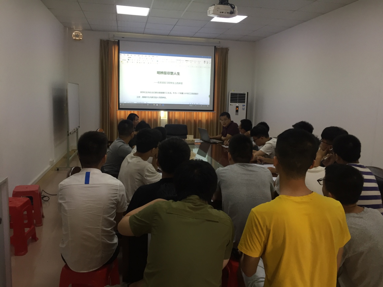 2018年7月2日,我院2015级材料化学专业18名同学在连州万仕达新材料有限公司开始了为期四个月的专业实习。公司为我院实习生组织了两天的岗前培训,培训中详细介绍了公司的发展历史、生产经营状况、生产工艺等情况,公司董事长梁东全先生陪同大家参观了生产车间等工作场地,还结合自己亲身经历,为同学们做了“明辨是非塑人生”的主题报告,同时介绍各个实习岗位的操作技能。实习同学们在梁董事长的鼓舞下,正式开始实习工作,集体进入生产车间,走向岗位,在实践中受教育、长才干、学以致用。