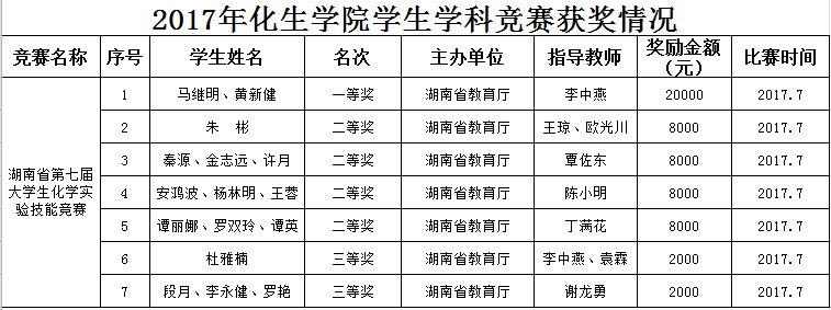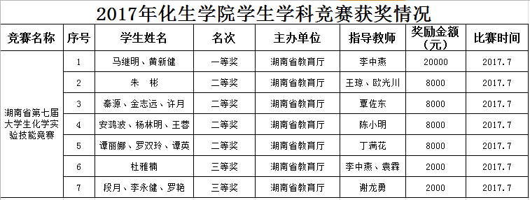 2017年化生学院学生学科竞赛获奖情况