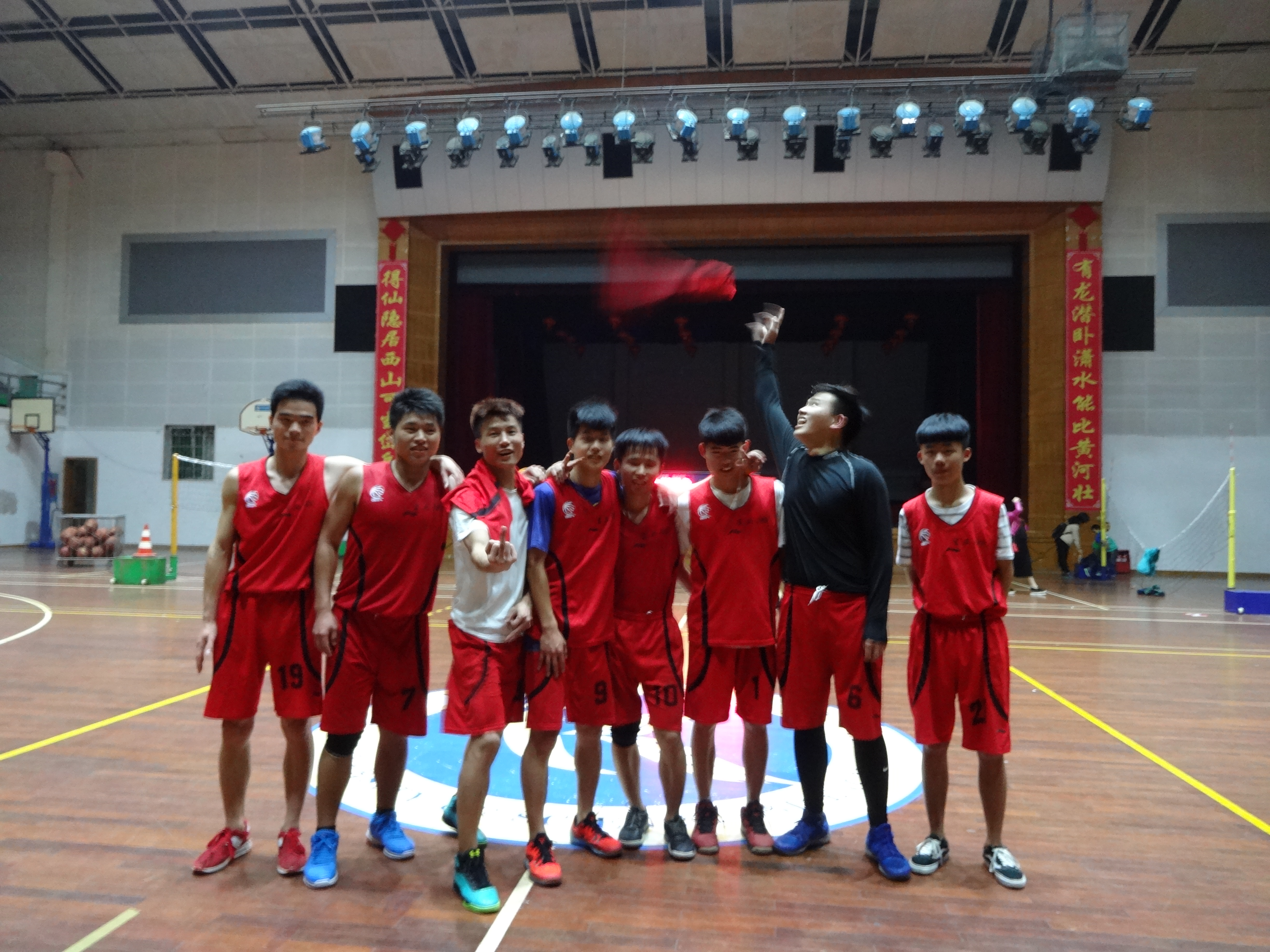 随着裁判的一声哨响,比赛正式拉开序幕。开场一分多钟,身着红色球服的生工班球员突破重重防守,攻进首球。上半场,红队球员充分发挥自己的优势发起快攻,不断利用防守打反击,球员之间配合默契,比分迅速拉开。下半场,生物班继续一路高歌,最后两分钟,红队8号以一个标准的空心三分球博得全场欢呼,啦啦队的呐喊声回荡在整个体育馆。最终生工1401班以19分的绝对优势获得本场比赛的胜利,问鼎本次联赛冠军。