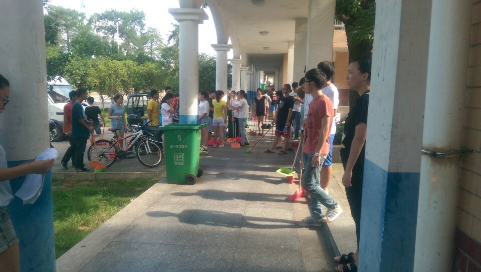 参加活动的党员和入党积极分子在桃五学生公寓前集合,在简短的动员后分成两组,一组在桃园5栋,1人负责打扫一间寝室,一组去松园4栋,两人负责打扫一间寝室。经过近3个小时有条不紊的劳动,各间寝室卫生情况得到彻底的改观,不少人拿出手机拍下自己的劳动成果并进行分享。