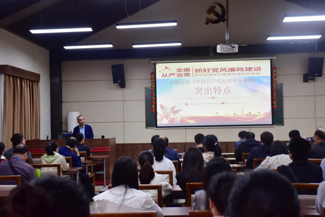 活动中,全体师生党员在学院党总支书记曾二青的带领下重温入党誓词,提醒党员始终牢记初心使命,对标党员标准,严格要求自我,做合格党员。曾二青还带领党员共同学习了新修订的《中国共产党纪律处分条例》,引导广大党员把党规党纪内化于心、外化于行。