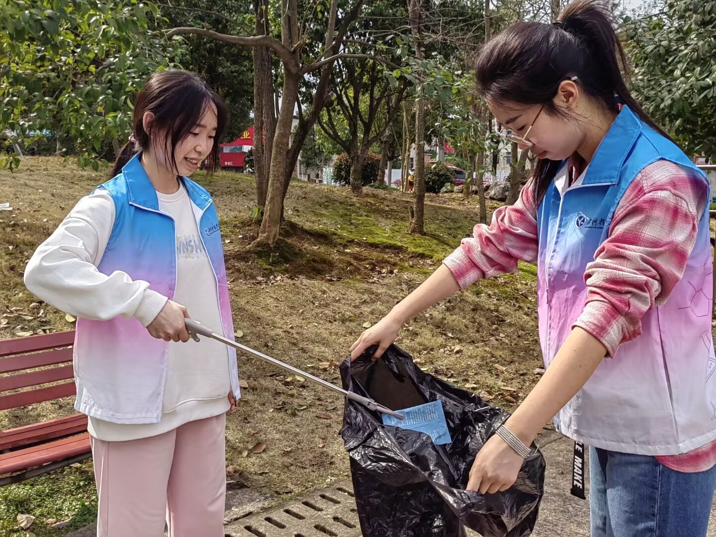 活动开始之际,化生院团学干部逸夫楼侧厅集合,准备好清扫工具后,便集体前往朝阳岩公园。到达后,志愿者们迅速分工协作,让身影遍布朝阳岩公园中。他们认真清理每一片土地做到不放过一个角落,不遗留一处垃圾。经过团队齐心协力的劳作,公园环境焕然一新。