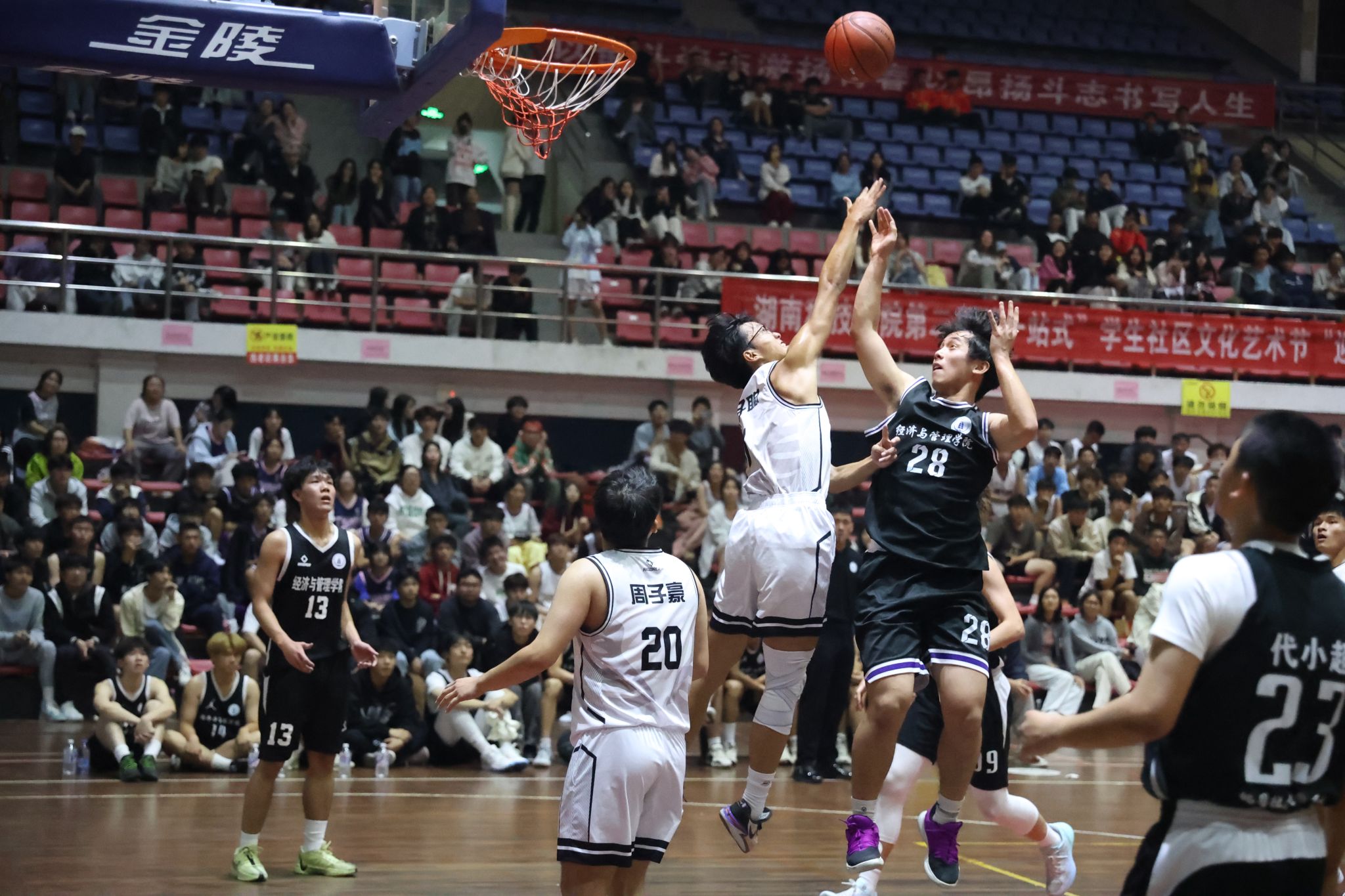 赛场上,队员们奋力拼搏。经过激烈比拼,音乐与舞蹈学院以28:22的优异成绩在女子揭幕赛中获胜;体育学院以69:59的优异成绩赢得男子揭幕赛胜利。