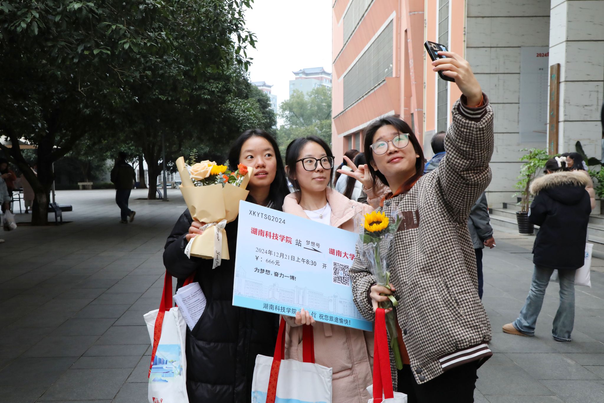 在12月5日的“考研加油站”活动现场,副校长郑银芳等学校领导为考研学子发放“加油”礼物。校长署名贺卡、金典牛奶、鲜橙、定制糕点等千余份专属福袋让同学们倍感温暖。还有众多供同学们挑选的励志明信片、书签和贴纸,“考得上、来得及、你可以”“前程似锦,未来可期”……一字一句,都写满了对同学们的殷切期望和美好祝福。馆长包本刚表示:“小小礼物代表了学校的祝福,寓意“金”榜题名、心想事“橙”和再攀新“糕”,寄托着图书馆对考研学子的殷殷关切和美好祝福,希望考研学子们都能如愿以偿,顺利上岸!”