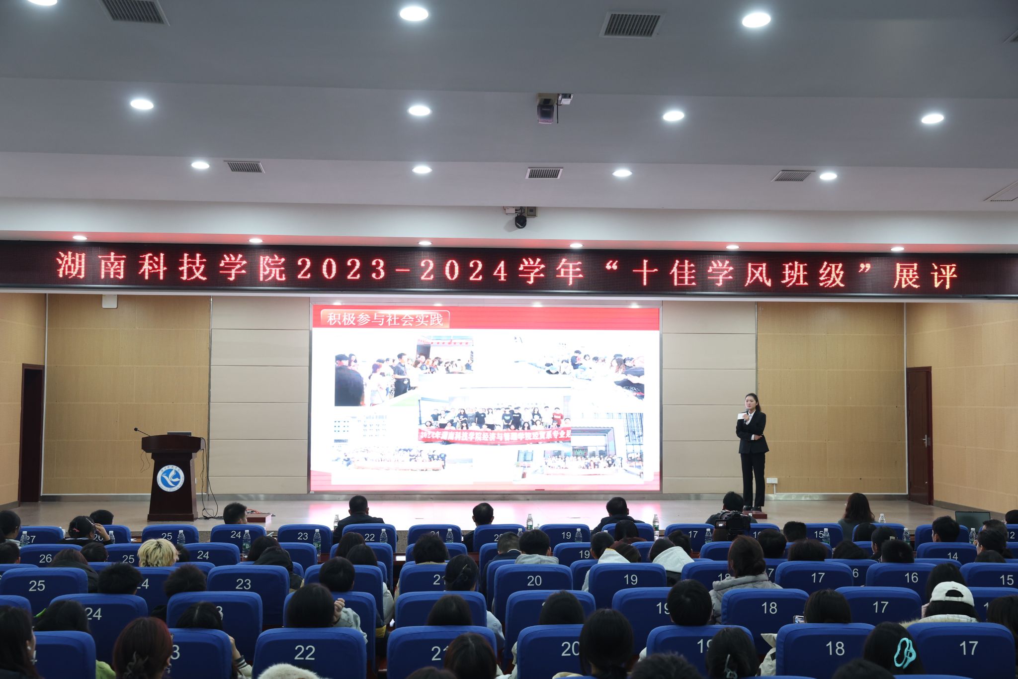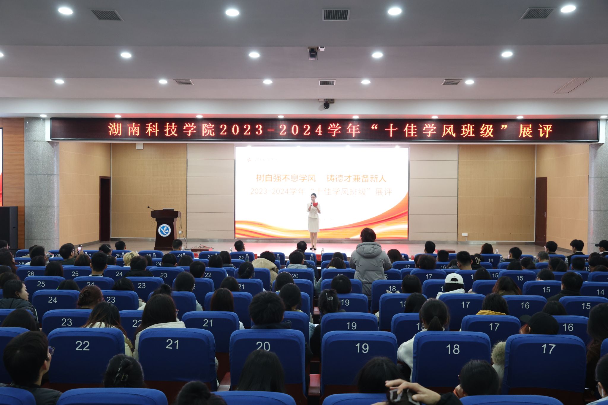 本网讯(通讯员 吕文青)为进一步加强学风建设,通过选树优秀学风班级,充分发挥榜样引领作用,带动全校学风进一步提升,12月5日晚,世界杯官网2023-2024学年“十佳学风班级”展评活动在潇湘大讲堂举行。校党委委员、副校长吴小林出席活动,宣传统战部、学生工作部、发展规划与学科建设处、后勤服务中心、教务处、教学质量管理处负责人参加活动并担任评委。