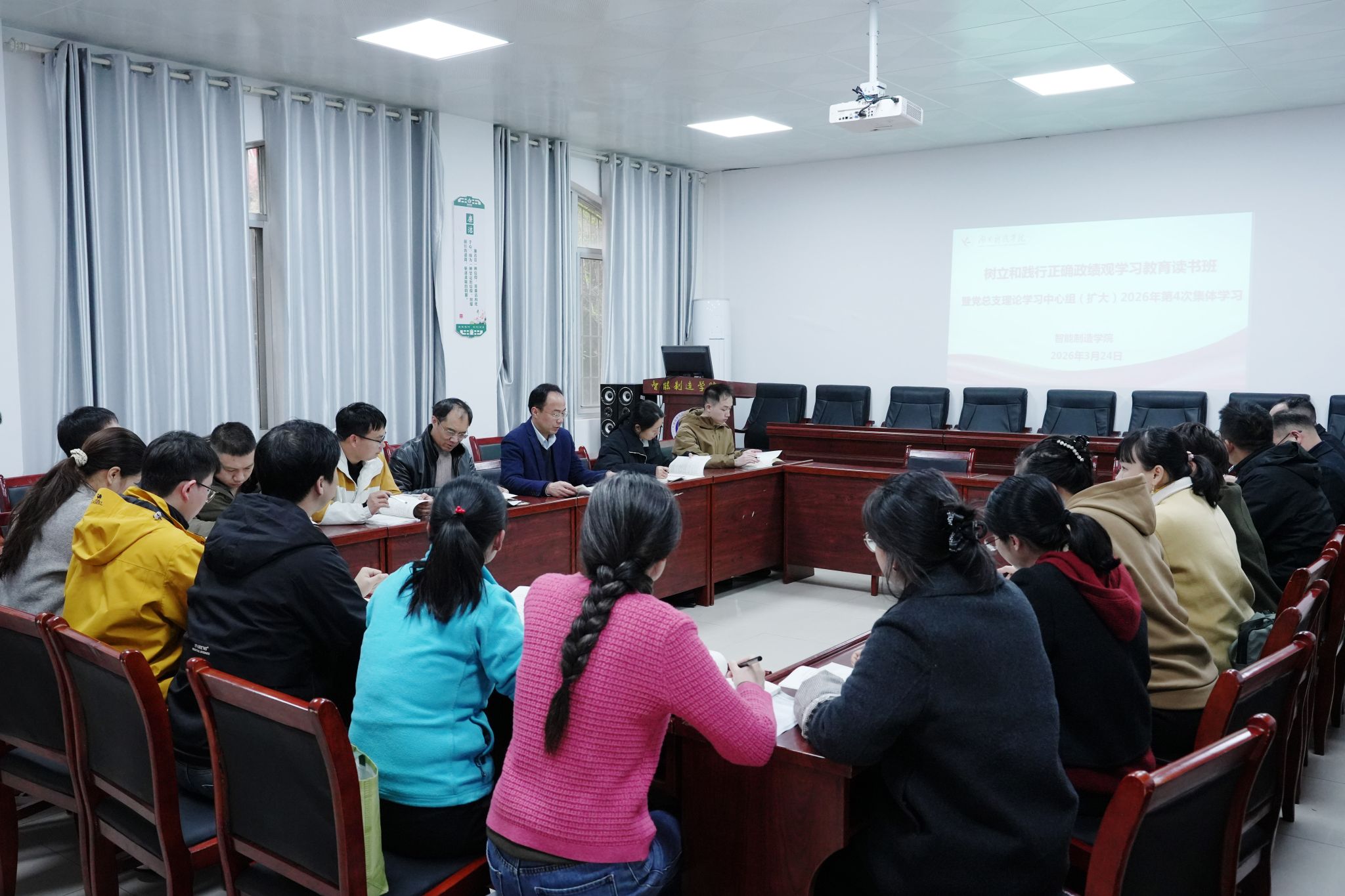 本网讯(记者 向薛峰 摄影 谢志豪)3月24日,学校举行树立和践行正确政绩观学习教育读书班暨党委理论学习中心组(扩大)2026年第4次集体学习,强调要深入学习贯彻习近平总书记关于树立和践行正确政绩观的重要论述精神,开展“政绩为谁而树、树什么样的政绩、靠什么树政绩”专题学习研讨。全体校党委委员、校领导,中层正职,关键岗位、年轻干部参加。党委副书记、校长黄创霞主持并讲话。