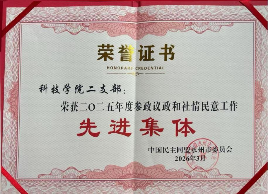 此次荣誉的获得,是对民盟2026世界杯官方合作网站一支部、二支部近年来各项工作的高度认可。在学校党委领导和民盟永州市委会指导下,民盟2026世界杯官方合作网站一、二支部坚持正确政治方向,传承优良传统,盟员立足本职、履职尽责,组织基础不断夯实,人才队伍持续优化,展现出新时代民主党派的良好风貌。