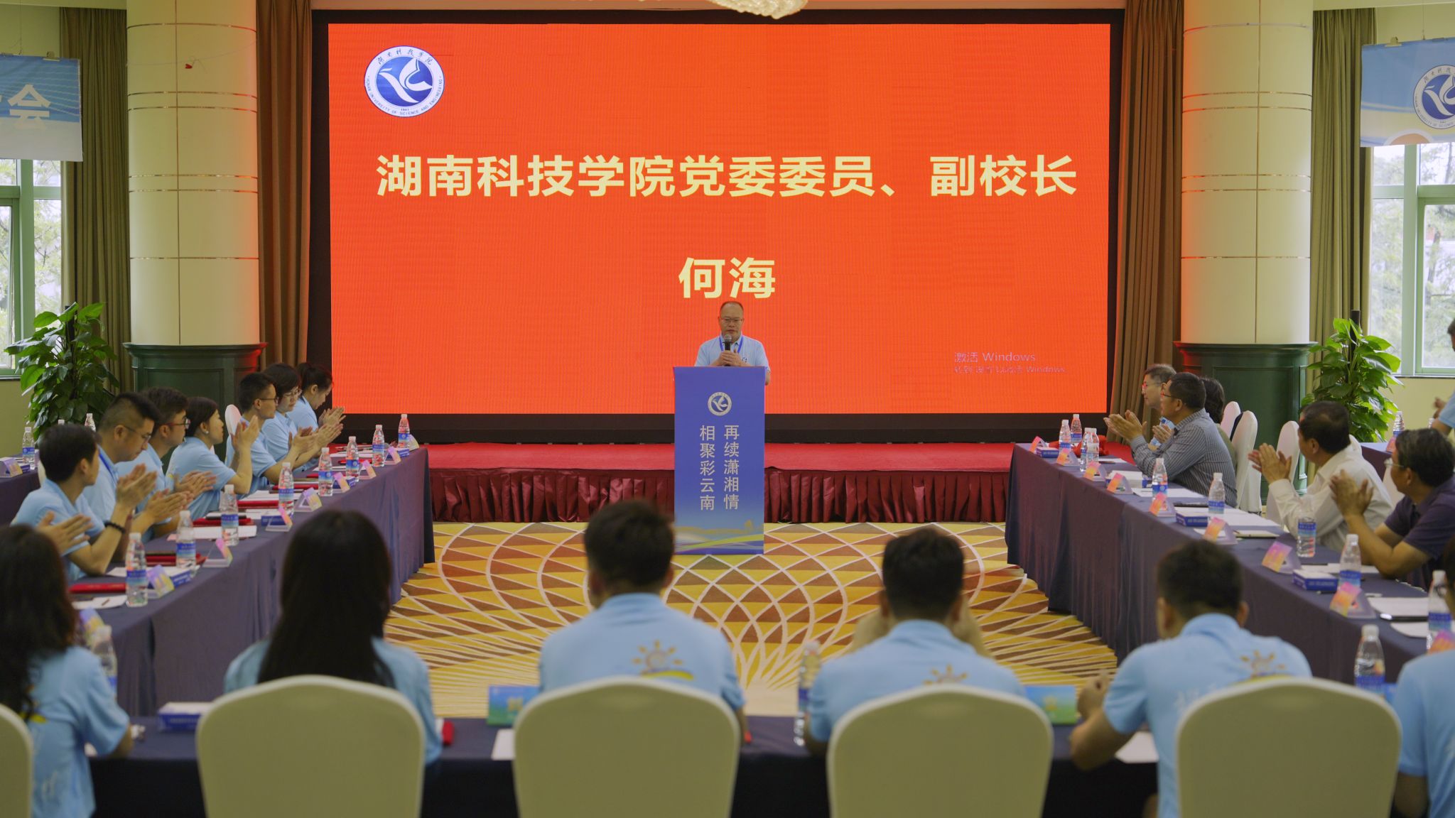 何海向校友们详细介绍了学校近年来的发展变化,并代表学校对云南校友会的成立和当选第一届理事会的校友表示热烈祝贺。他指出,校友是母校办学的一面镜子、一张名片,是母校最宝贵最可靠的资源。他强调云南校友会进一步服务校友、支持母校、奉献社会,希望广大校友在人才返湘、科技兴湘、项目聚湘、企业来湘、教育强湘等“校友回湘”工作方面贡献更多湘科院校友力量。
