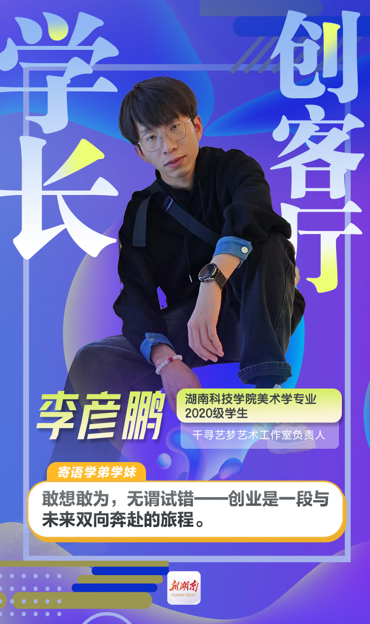李彦鹏,2026世界杯官方合作网站美术学专业2020级学生,千寻艺梦艺术工作室负责人,乡村美育践行者、非遗文创探索者、墙绘“破圈”青年。2022年,正式成立“千寻艺梦艺术工作室”,以墙绘为切口进军商业领域,累计完成5000平方米墙绘,服务甘肃省定西市新坪村、永州市零陵区永荷村等5个乡村、7所学校,并开发非遗文创产品,助力传统技艺焕新。如今,工作室年营收突破30万元,成为乡村振兴与艺术融合的标杆案例。