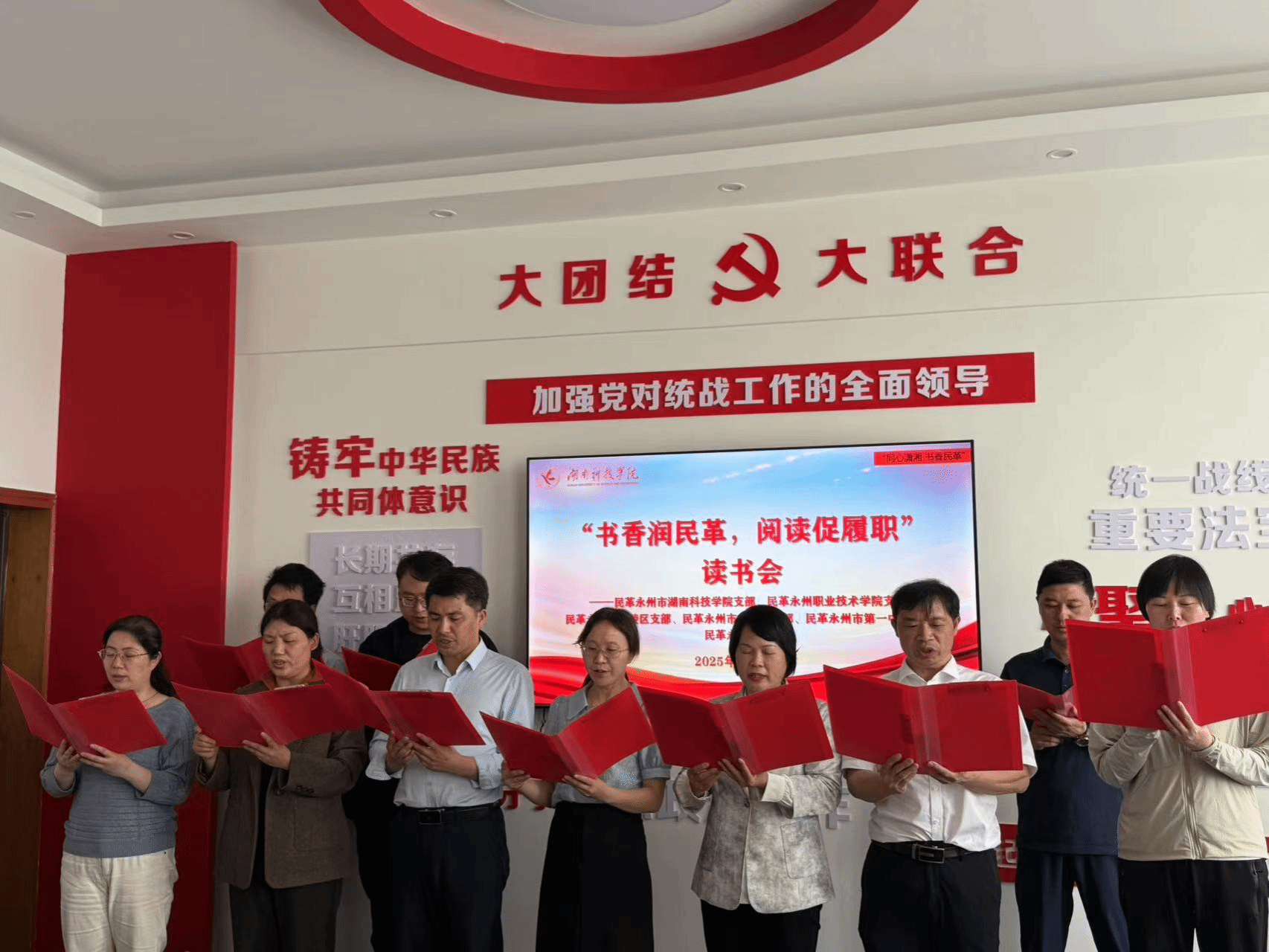 世界杯官网民革支部还联合各兄弟支部举办了“书香润民革,阅读促履职”读书会。来自5个支部的9名党员结合自身学习工作实践,从不同角度分享了读书体会。其中,世界杯官网民革支部党员邹小阳分享了《王船山》阅读心得,刘晓霞分享了《人工智能的底层逻辑》阅读心得,党员们还齐声朗诵了《满江红·统一战线赋》,并纷纷表示,通过读书分享和交流,不仅感受到阅读的魅力,也进一步明确了履职尽责的方向。
