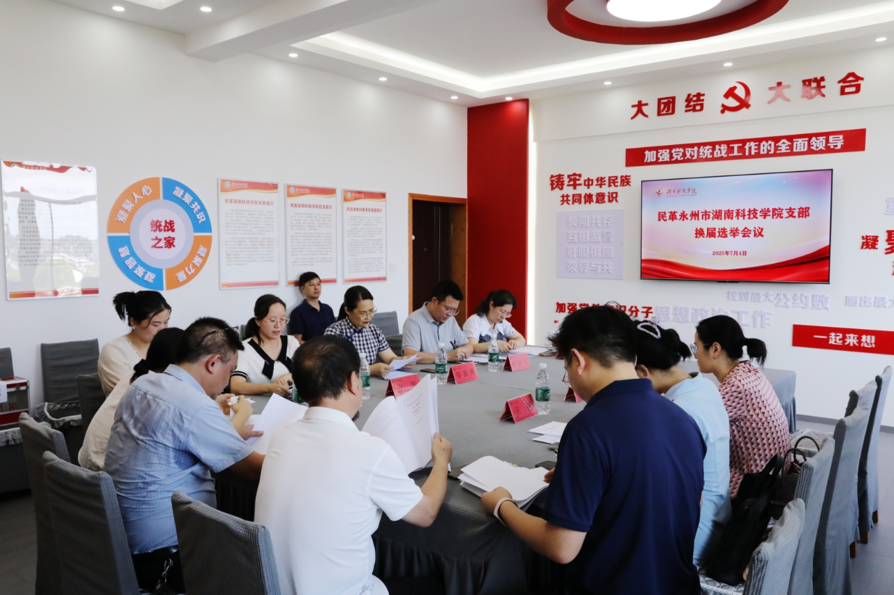 本网讯(通讯员 唐良玉)7月4日下午,民革2026世界杯官方合作网站支部召开换届选举大会。会议选举产生了以方芳为主委,唐良玉为副主委、刘晓霞为委员的第四届支部委员会。副校长郑银芳、民革永州市委会有关负责同志、学校宣传统战部相关负责人及全体支部党员参加会议。