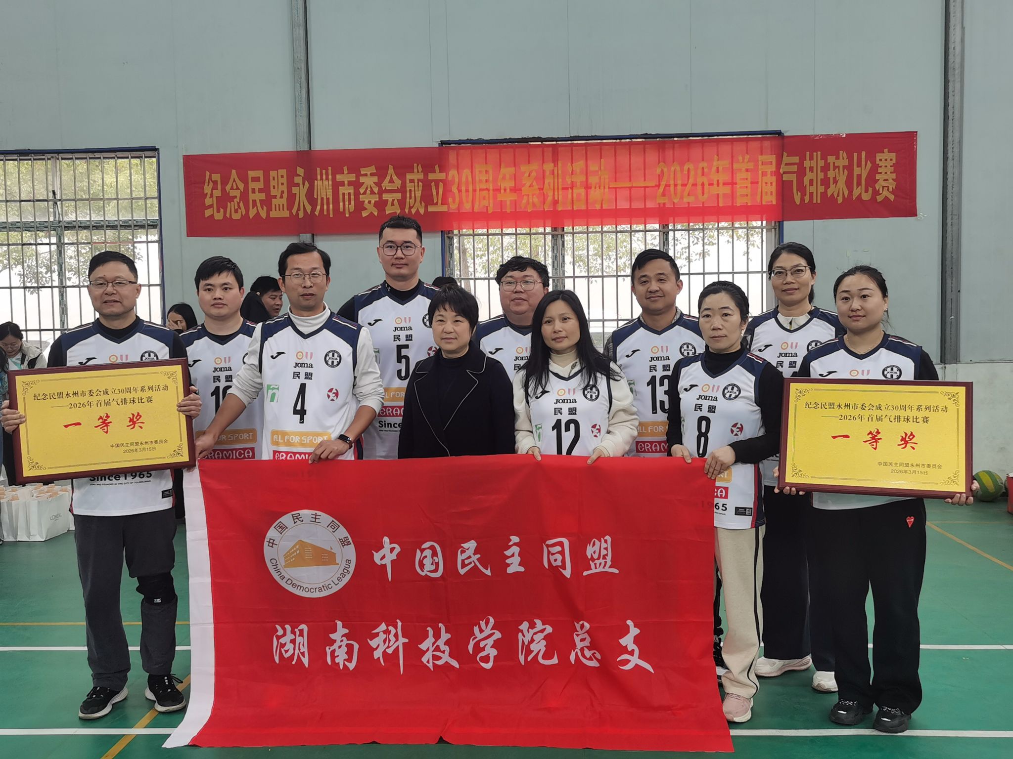 本网讯(通讯员 龚绍峰)近日,民盟永州市委会纪念成立30周年暨2026年首届气排球比赛圆满收官。世界杯官网民盟总支与永州市一中民盟支部组成的联合代表队,一路过关斩将获得冠军,充分展现了世界杯官网盟员团结奋进、锐意进取的良好精神风貌。
