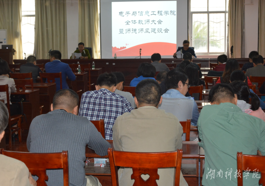 本网讯(通讯员 刘俊雄)为响应学校学风建设年的号召,进一步加强教师的师德师风建设, 10月11日下午,电子与信息工程学院以“两学一做”为契机,召开师德师风建设会议。