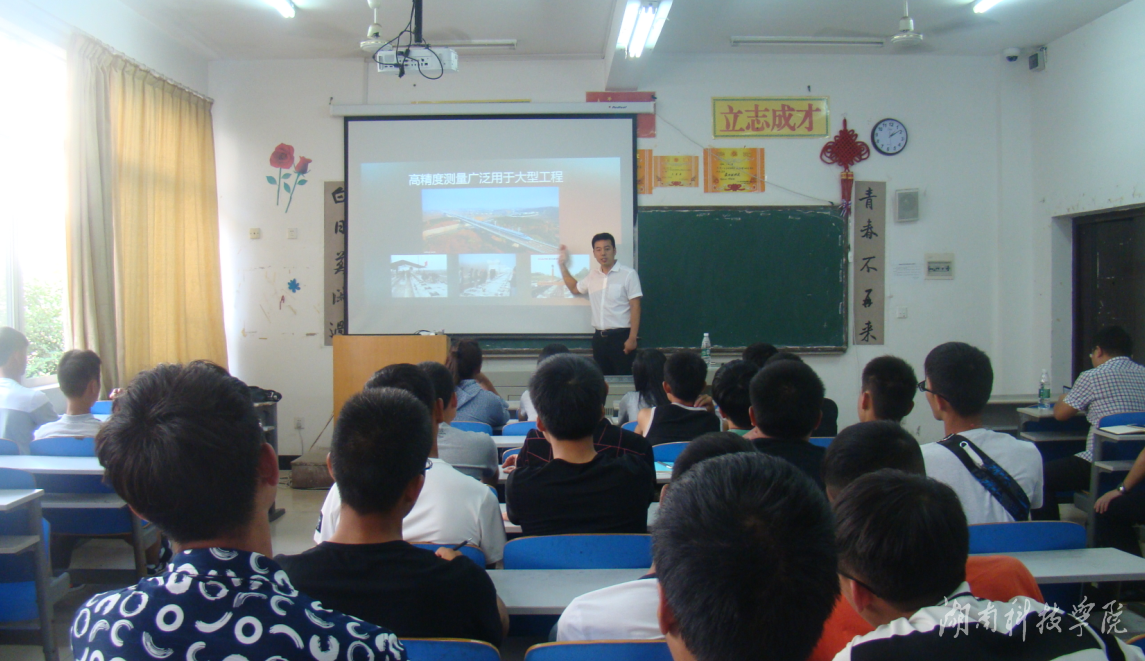 本网讯(通讯员 廖群峰)9月23日下午,逸夫楼204教室座无虚席,南方测绘湖南分公司总经理邓万军应土木与环境工程学院邀请,为2016级测绘工程专业新生作题为《从技术的发展看测绘地理信息行业的跨越》的讲座,讲座由该院副院长周基主持。该院党总支书记张俭民、副书记冯煜出席。