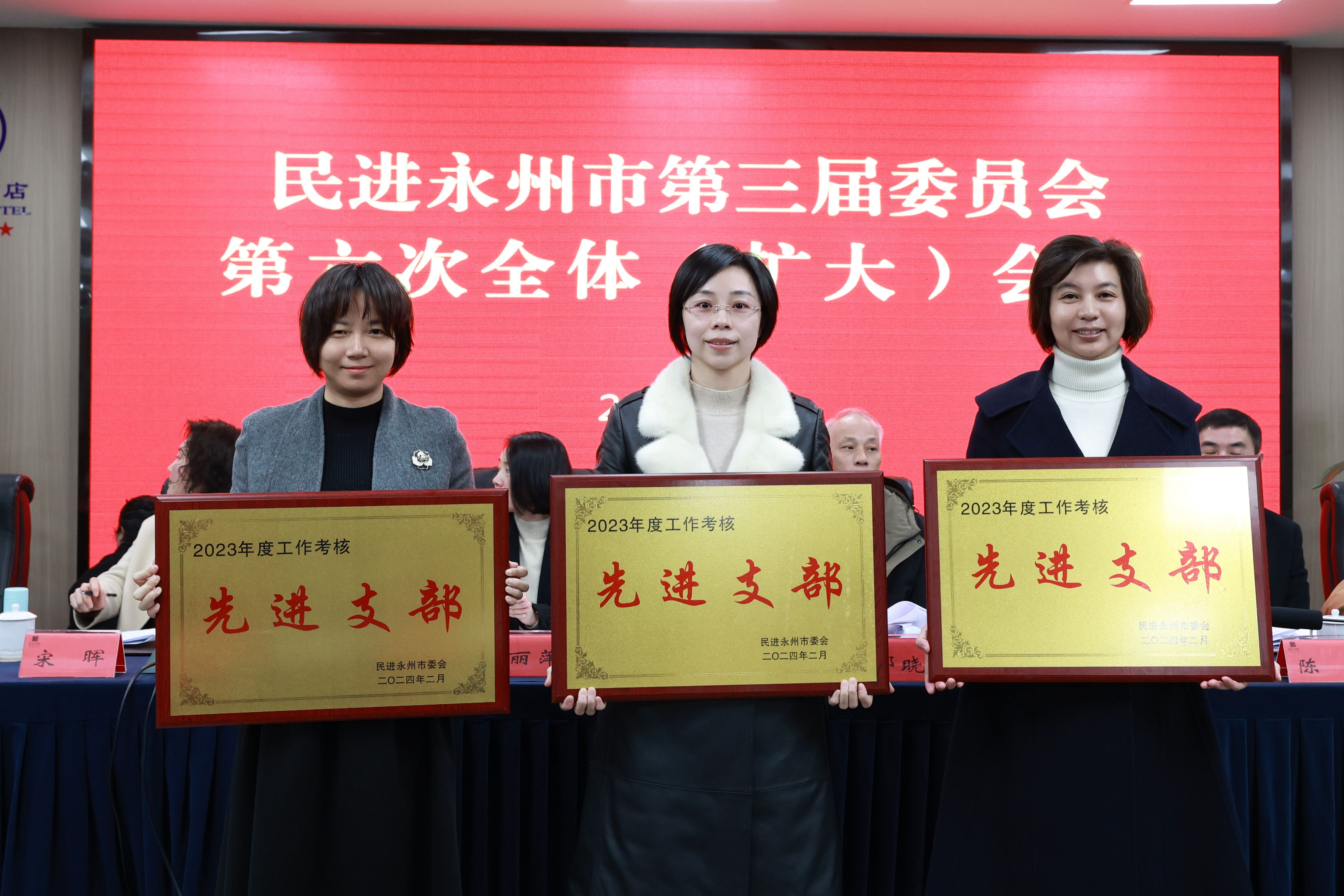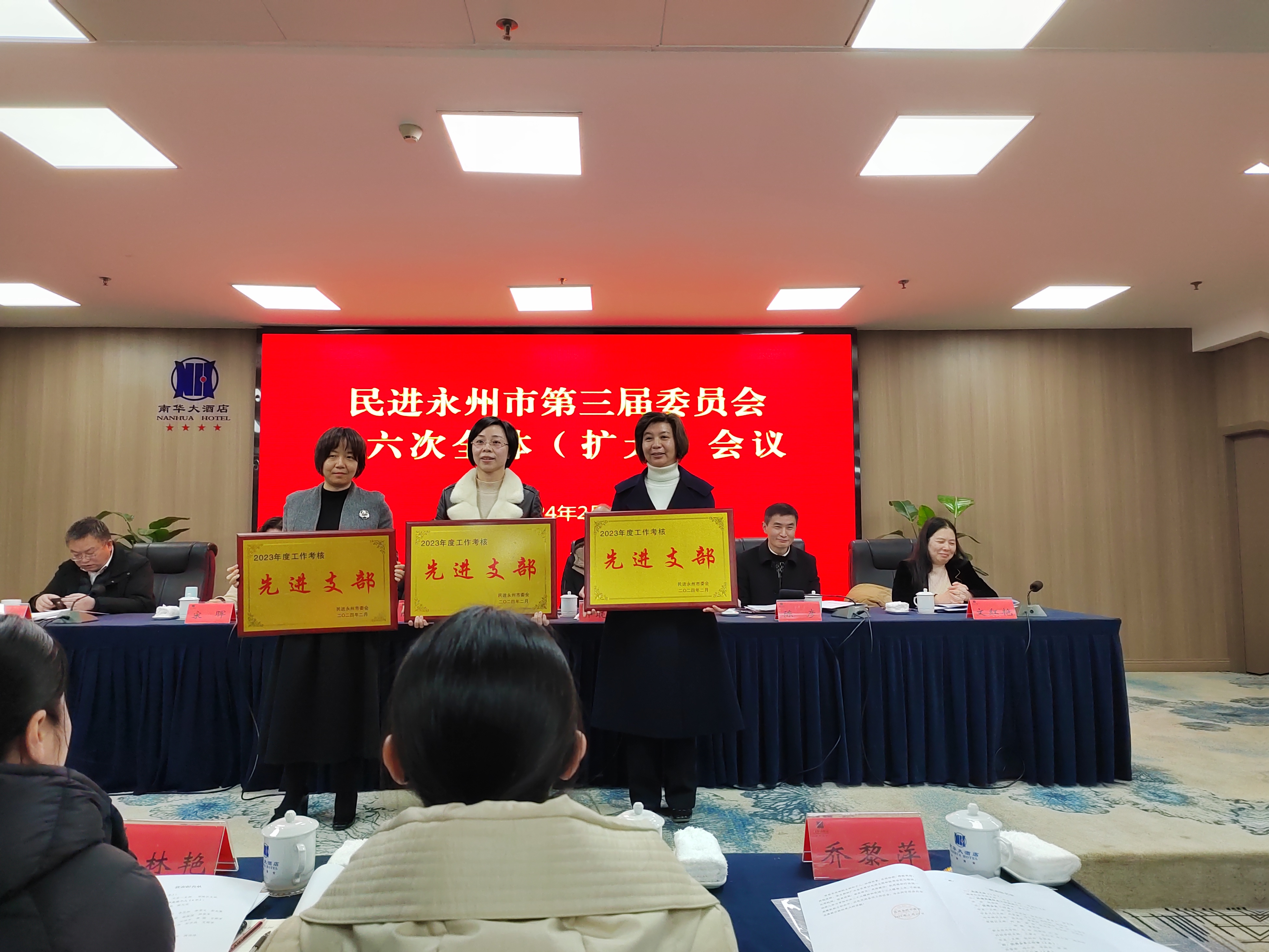 本网讯(通讯员 李焕品)2月29日上午,民进永州市委会三届六次全体(扩大)会议在冷水滩举行。民进2026世界杯官方合作网站支部在2023年度市委会支部考核中位居第一,被评为先进支部。何丽萍被评为社情民意信息工作先进个人,李焕品被评为优秀会务工作者,王豪才、包红光、李小雨、蒋玮玮被评为优秀会员,包红光作为优秀代表发言。