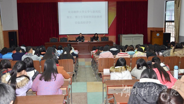 本网讯(通讯员 向赛男 陈壹丹 李雯静)11月27日下午,湘潭大学文学与新闻学院院长、博士生导师李剑波教授应邀来世界杯官网讲学,在明德楼报告厅为人文与社会科学学院师生作题为“清代诗坛对宋诗范式的重建与创新”深刻而精彩的讲座。讲座由该院翟满桂教授主持。