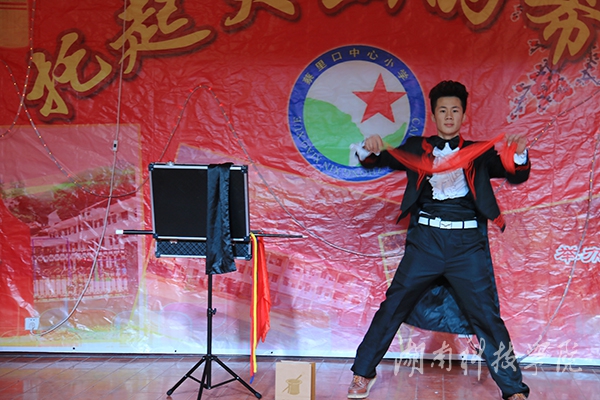 此次联谊会上世界杯官网音乐与舞蹈学院与蔡里口小学齐齐表演精心准备的节目表演获得大家一致好评。《小人舞》以动感的串烧音乐、浮夸的装扮与面部表情出境,诙谐幽默地展现了小人物身上的正能量;魔术表演将联谊会推向了高潮,娴熟的技巧、灵活的手法,让观众看得目不转睛,台下掌声雷动;陶笛演奏美妙的天籁之音,让现场观众沉醉其中;群舞《小伙四弦马樱花》充满了生动、欢趣、幽默、和谐的情节,让大家沉浸在欢乐之中;歌伴舞表演《美在永州》,其甜美的嗓音及其身后翩翩动人、婀娜多姿的舞姿,不仅给予现场师生视觉上的和心灵上的震撼,而且仿佛已将永州的风景美和其深厚文化底蕴诠释地淋漓尽致。