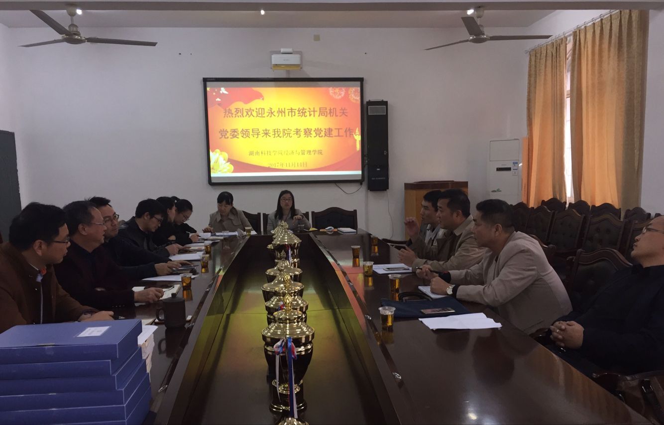 本网讯 11月14日上午,经济与管理学院邀请永州市统计局副局长刘汉武来该院考察党建工作,交流合作办学。该院党总支书记胡清华,院长、党总支副书记李清泉参加交流会。