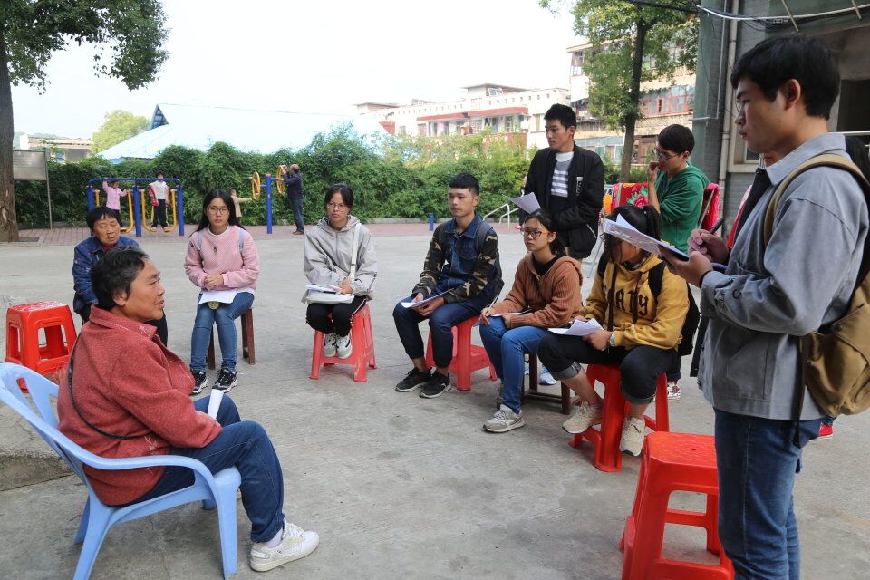 志愿者们在社区负责人的带领下挨家挨户的将党的十九大相关报道读给社区老人听。年过六旬的伍天汉老人与志愿们一同唱起了《没有共产党,就没有新中国》,他对志愿者们说,感谢党对人民群众的关怀,国家出台的精准扶贫等一系列政策也让贫困家庭的的生活有了保障,生活越来越好了。柏银珠老人则对志愿者们寄予了深切期待,她说这个时代是年轻人的,年轻人要牢记自己的历史使命,坚定理想信念,奋发有为,为国家富强作出贡献。