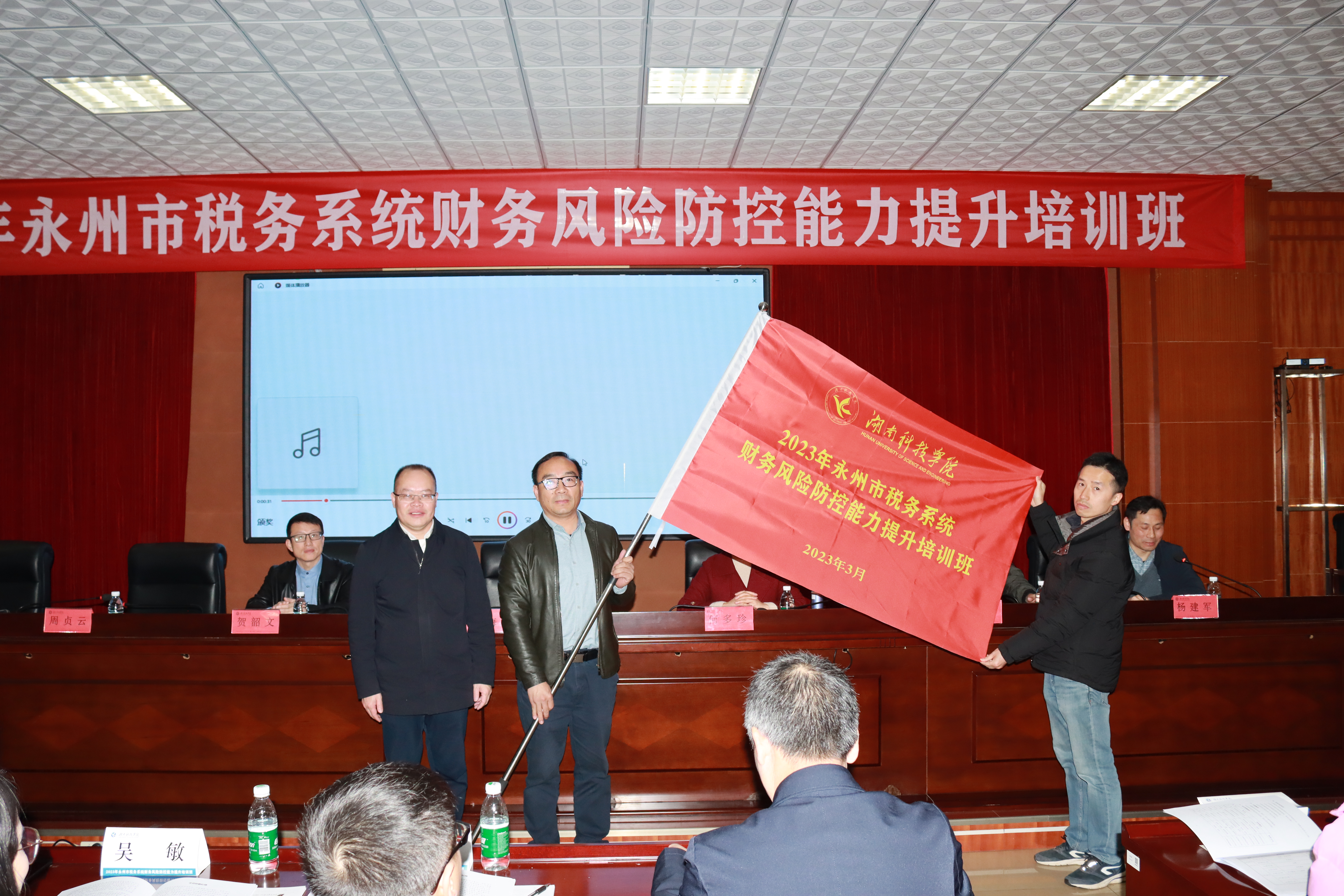本网讯(通讯员 邹小阳)3月29日上午,国家税务总局永州市税务局和继续教育学院联合举办的2023年全市系统财务风险防控能力提升培训班在世界杯官网开班。国家税务总局永州市税务局党委委员、副局长何多珍作开班动员,党委委员、副校长何海为培训班授旗,继续教育学院副院长杨建军主持开班仪式。