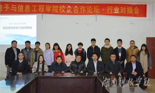 本网讯(通讯员 刘俊雄)12月12号下午,电子与信息工程学院2015年校企合作论坛暨行业对接会在知行楼206会议室举行,北京用友审计软件有限公司总裁陈泽、北京畅想未来科技有限公司CEO张琪、星宇无限(北京)科技有限公司总经理熊彪等5家企业老总和该院领导、各系部负责人、部分教师和学生代表40多人参加本次论坛,论坛由该院党总支书记陈泽顺主持。