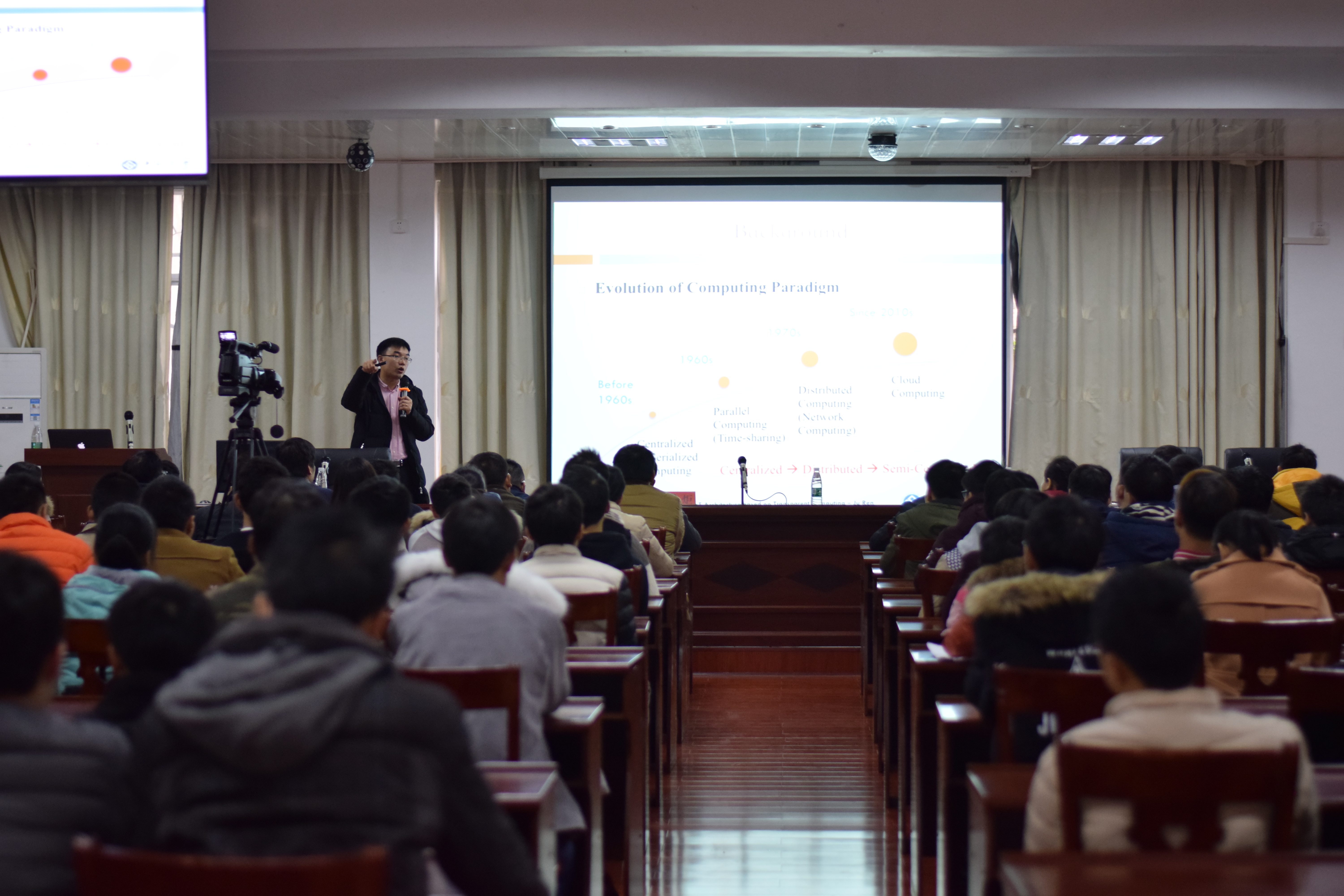 本网讯 11月24日下午,电子与信息工程学院特邀中南大学信息科学与工程学院特聘教授、博士生导师任炬来校为师生开展题为《Serving at The Edge: A Scalable IoT Platform based on ransparent Computing》(基于透明计算的物联网边缘服务系统:理论及实践)的学术讲座。该院全体领导及相关专业师生聆听了讲座。