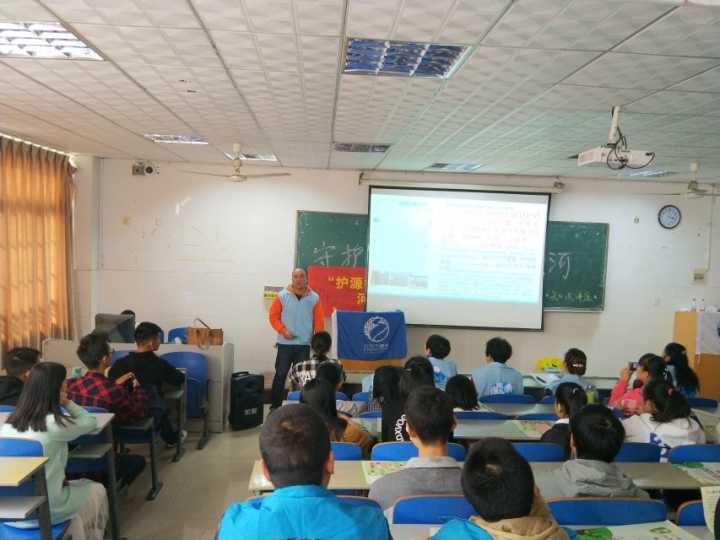 讲座由绿色潇湘河流守望者零陵组的陈龙老师主讲,他给大家普及了“河流污染情况有哪些”、“水质监测要点”、“垃圾分类的重要性”等相关知识,并结合绿色潇湘河流守望者零陵组在过去的四年中所处理的问题进行案例讲解,内容丰富。