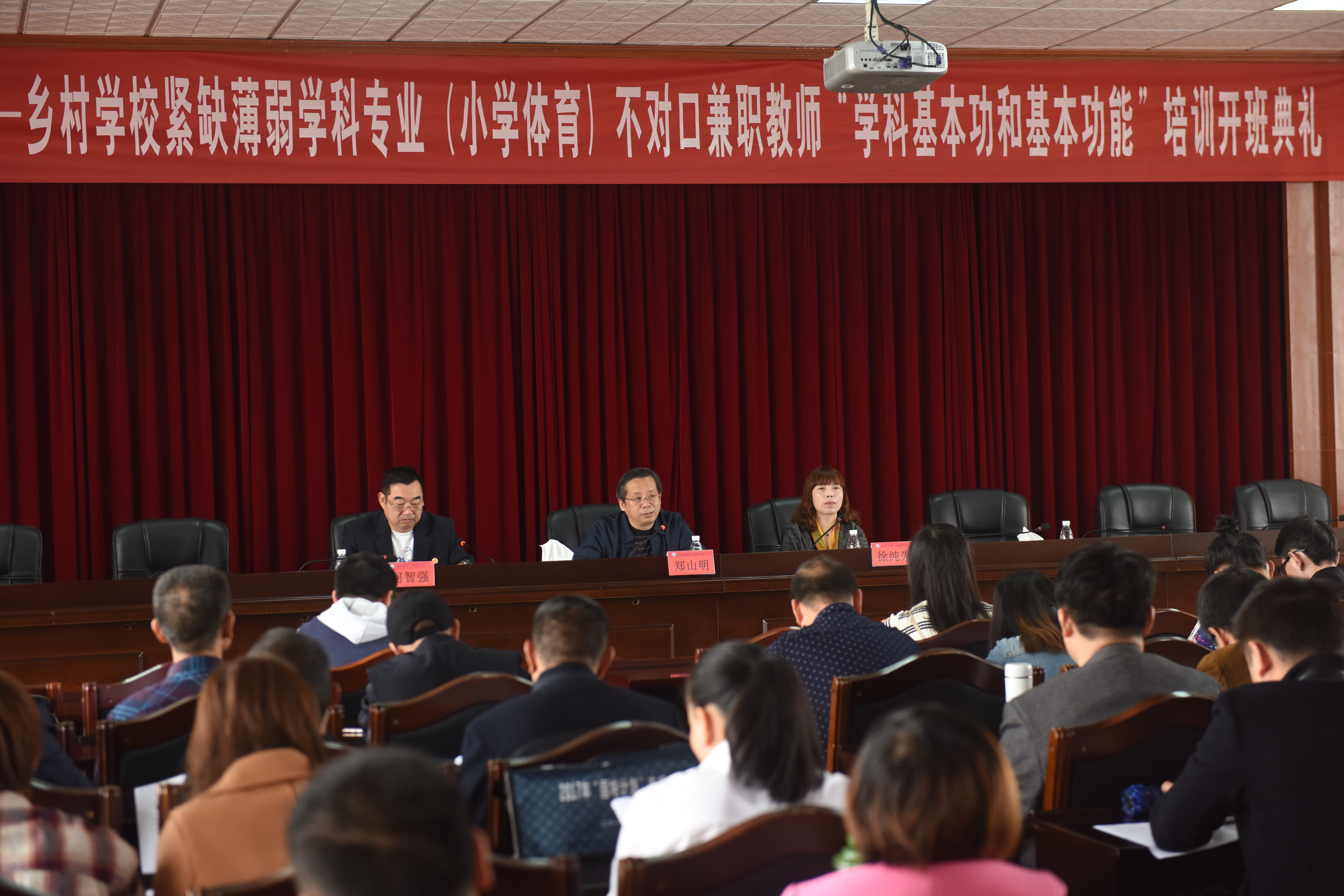 本网讯 11月10日,“国培计划(2017)”——乡村学校紧缺薄弱学科专业(小学体育)不对口兼职教师“学科基本功和基本功能”培训开班典礼在行政楼八楼一会议室举行,副校长郑山明、继续教育学院院长徐纯先出席本次开班典礼,体育学院党总支书记何智强主持开班典礼。
