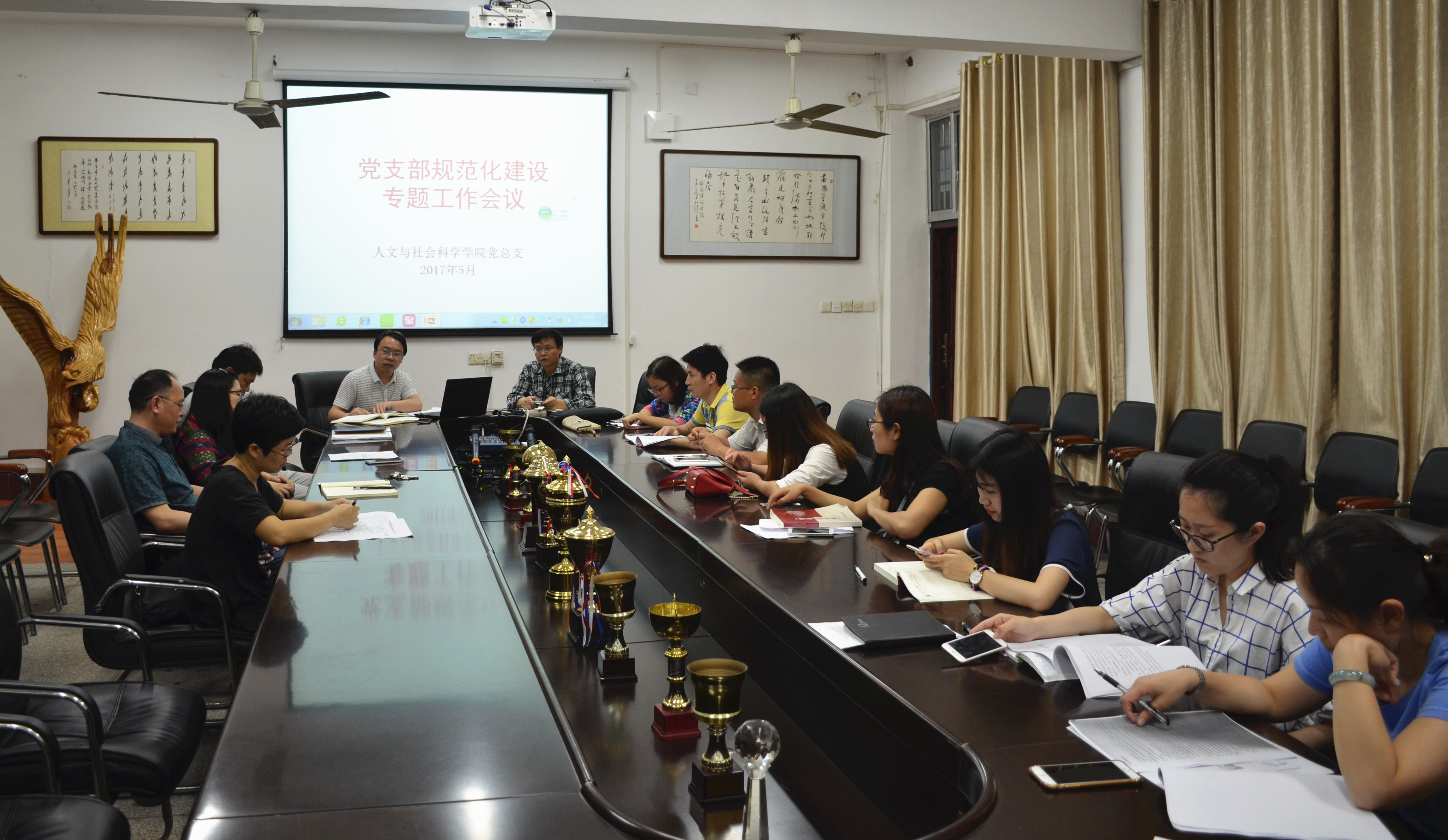 本网讯 为落实学校党支部规范化建设工作要求,全面提升基层党支部党建工作水平,5月23日,人文与社会科学学院党总支在明德楼203会议室召开支部规范化建设专题会议。