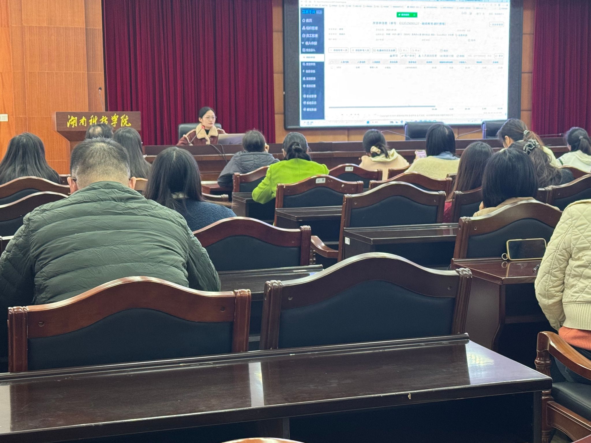 会上,长沙网财信息技术服务有限公司技术人员唐超群围绕线上签批、预算填报两大功能,进行系统讲解、操作演示与问题解析,重点讲解线上填报流程、附件上传要求、发票重复处理等常见问题,明确处理方式,规范操作标准。
