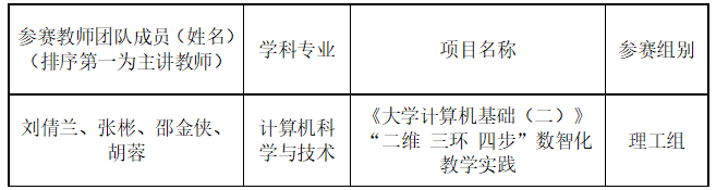 原拟推荐参加2024年湖南省普通高校教师数字化教学竞赛的胡蓉教师团队因成员个人原因放弃推荐资格,经资格审查,确定推荐刘倩兰教师团队参赛。现予以补充公示:
