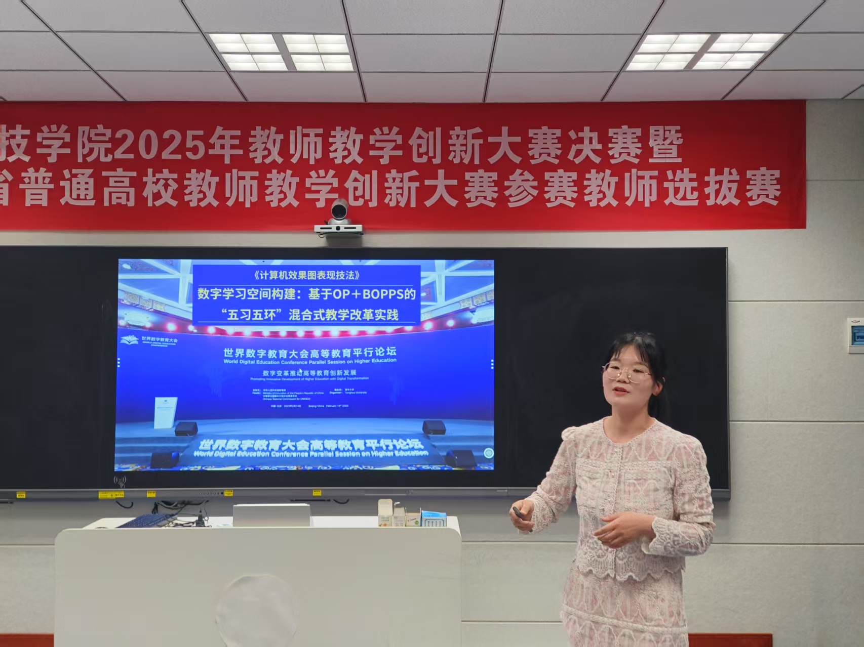 本网讯(通讯员 吴潭)4月11日下午,世界杯官网举行2025年教师教学创新大赛校级决赛暨省级比赛选拔赛。经过各学院初赛推荐,组织专家组对竞赛文档盲审,共有8个教学团队参加了校内决赛,每位比赛选手进行12分钟的教学创新汇报,之后评委进行现场提问。