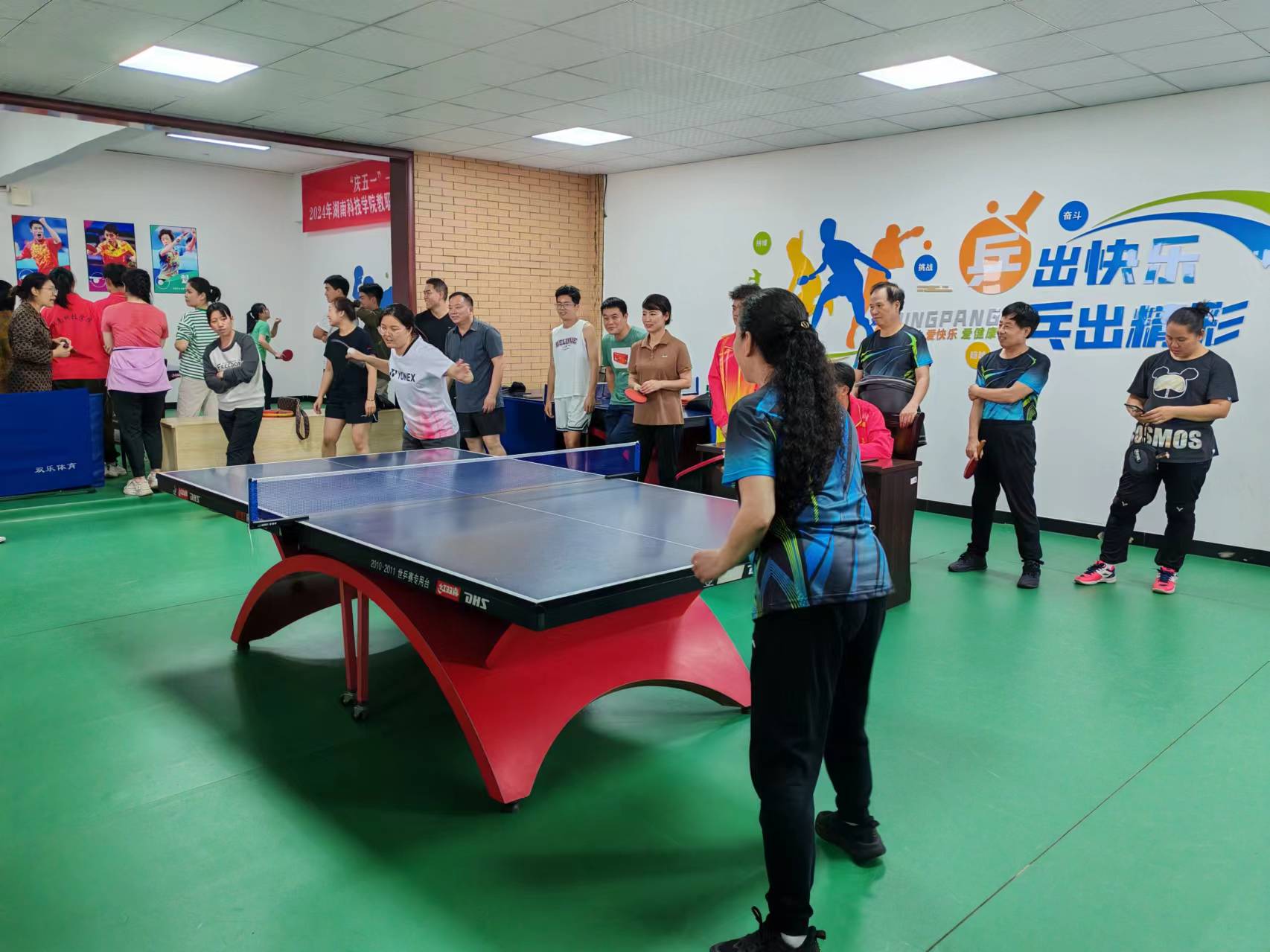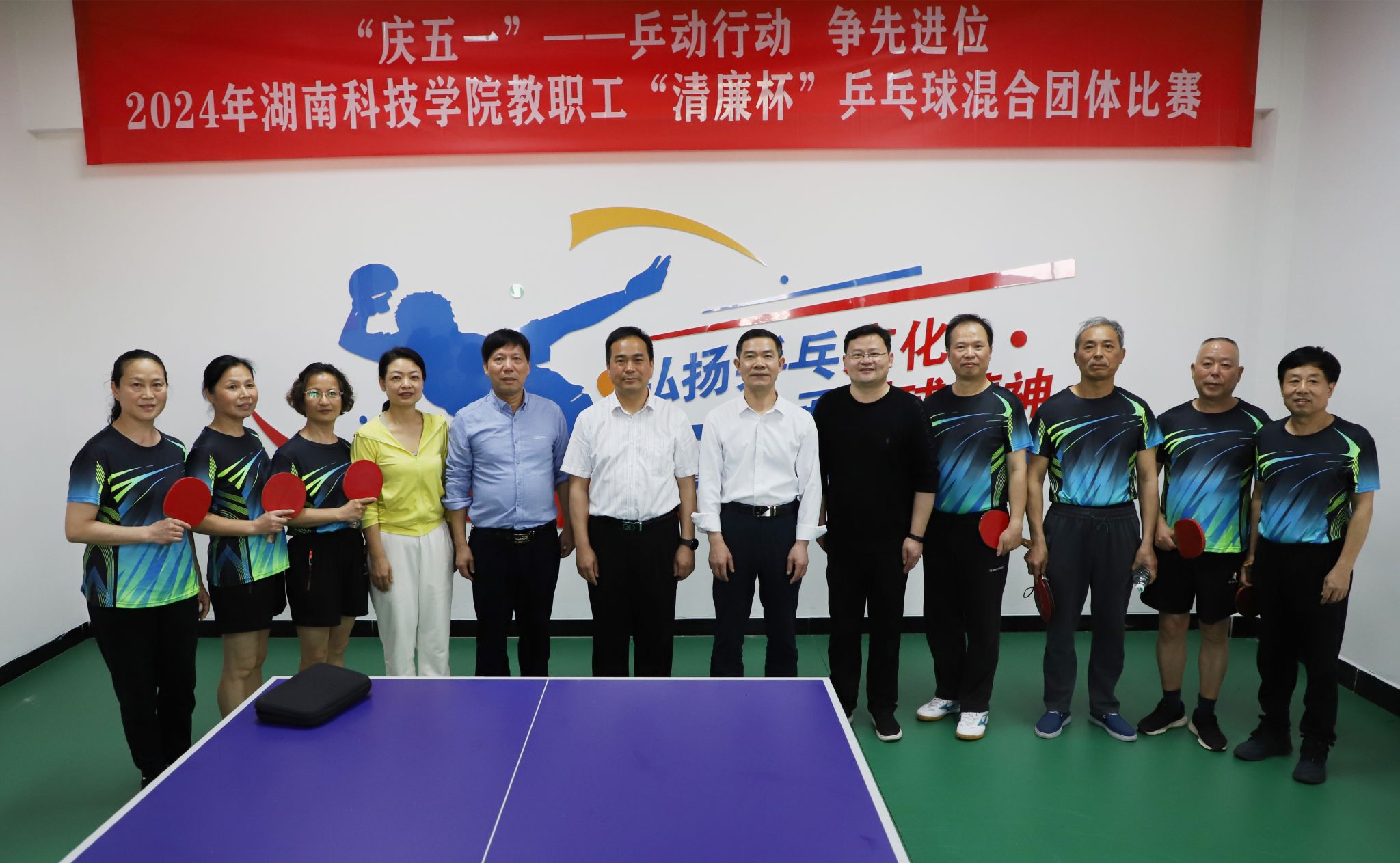 本网讯 5月7日,教职工“清廉杯”乒乓球混合团体赛开赛。校长黄创霞,副校长吴小林出席开幕式,来自全校各分工会的14支队伍、118名队员参加。