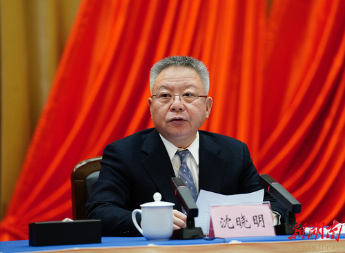 沈晓明指出,过去一年,全省各级党委(党组)和纪检监察机关深入学习贯彻党中央决策部署及习近平总书记关于湖南工作的重要讲话和指示批示精神,扎实开展主题教育和纪检监察干部队伍教育整顿,持续优化政治生态,推动全面从严治党不断向纵深发展,清廉湖南建设取得了新进展新成效。但从易鹏飞、彭国甫、戴道晋等人被查处以及我省近期查办案件的情况看,党风廉政建设和反腐败斗争形势依然严峻复杂,管党治党决不能有松劲歇脚、疲劳厌战的情绪。要时刻保持清醒头脑,把严的基调、严的措施、严的氛围长期坚持下去,一刻不停推进全面从严治党,加快建设清廉湖南。