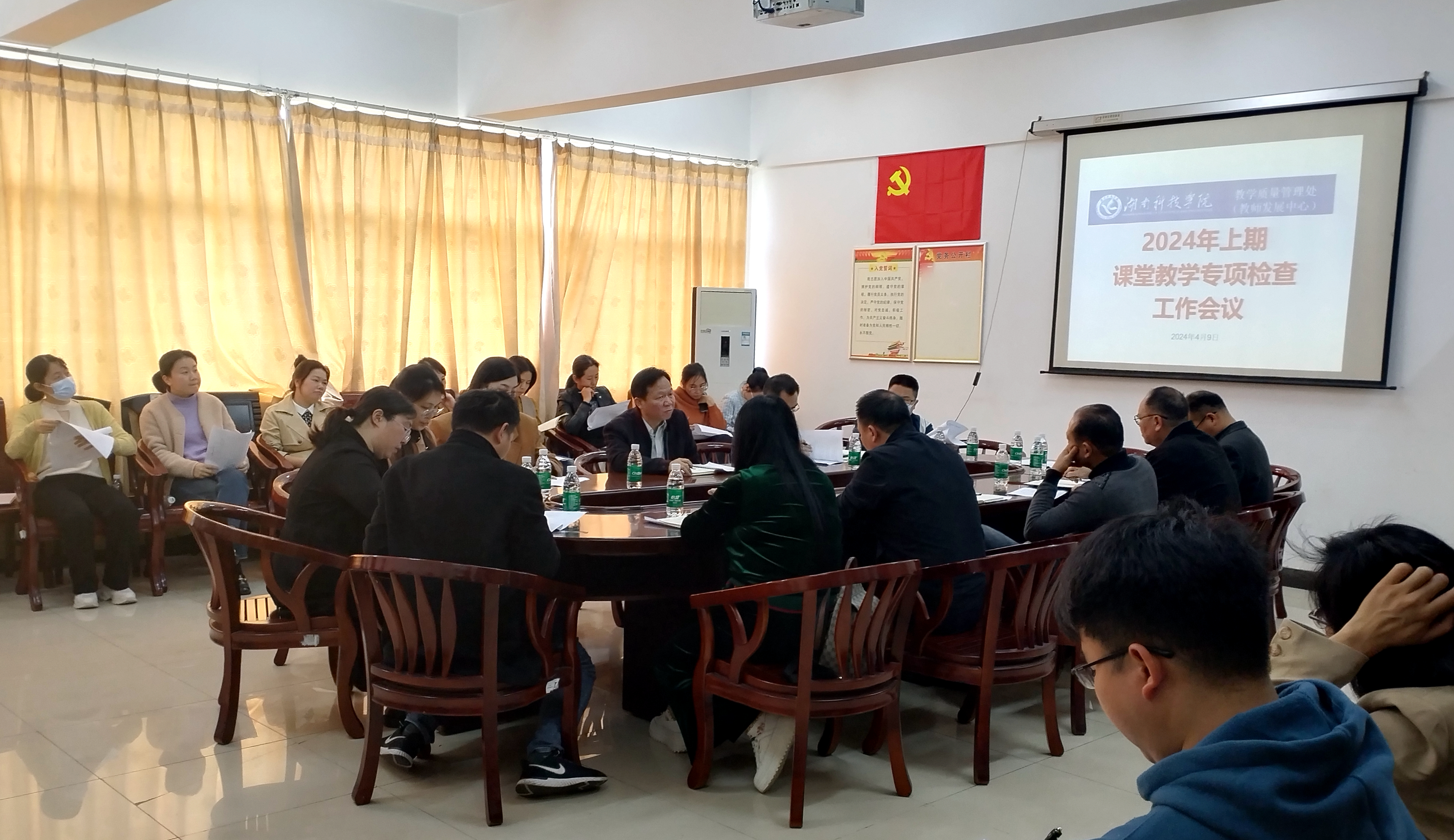 为进一步规范教学管理,提高教学质量,优化教风学风,4月9日下午,世界杯官网在行政楼413会议室召开2024年上期课堂教学专项检查工作会议。教学学院主管教学工作副院长、教务办人员及全体教学专项检查工作人员参加会议。