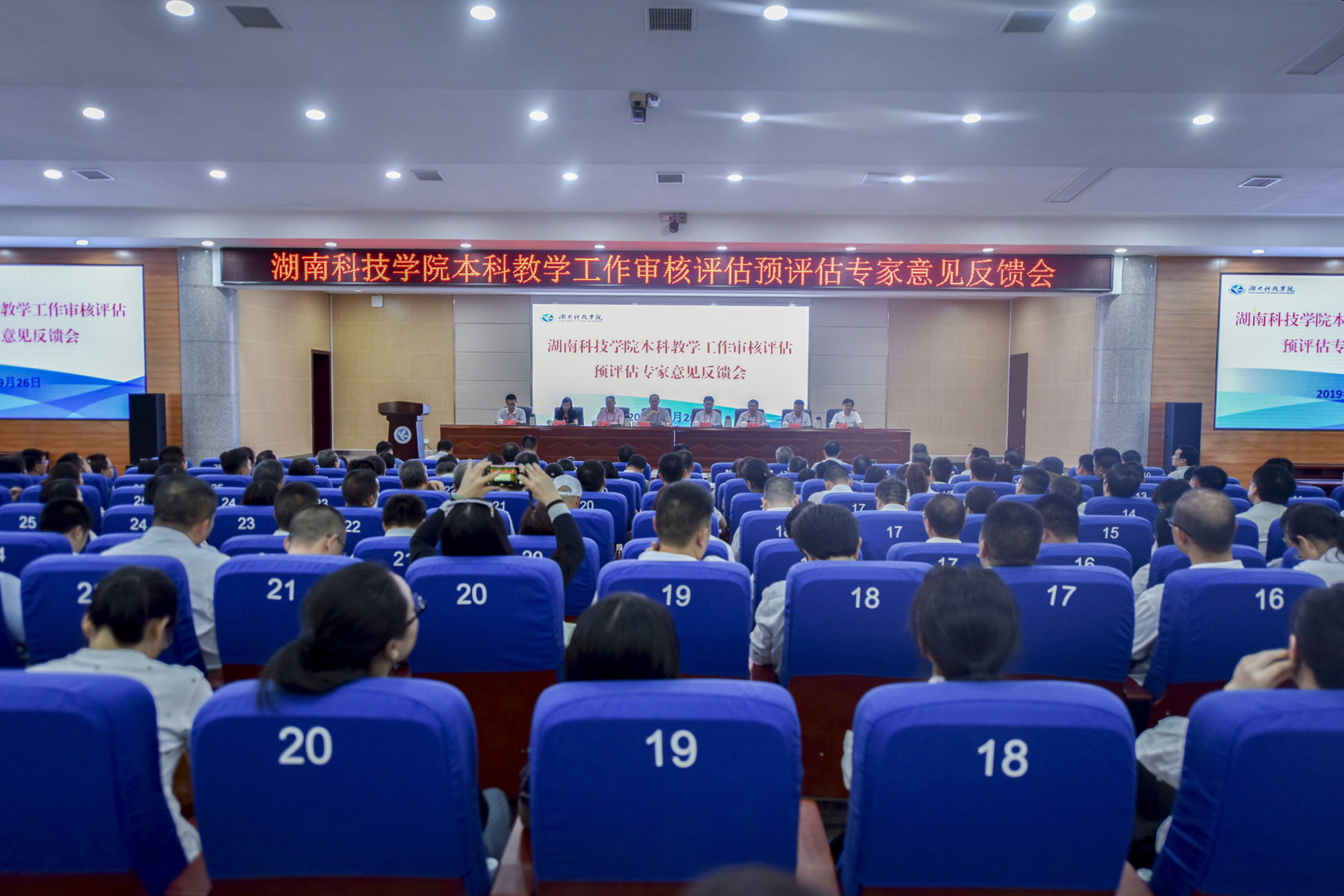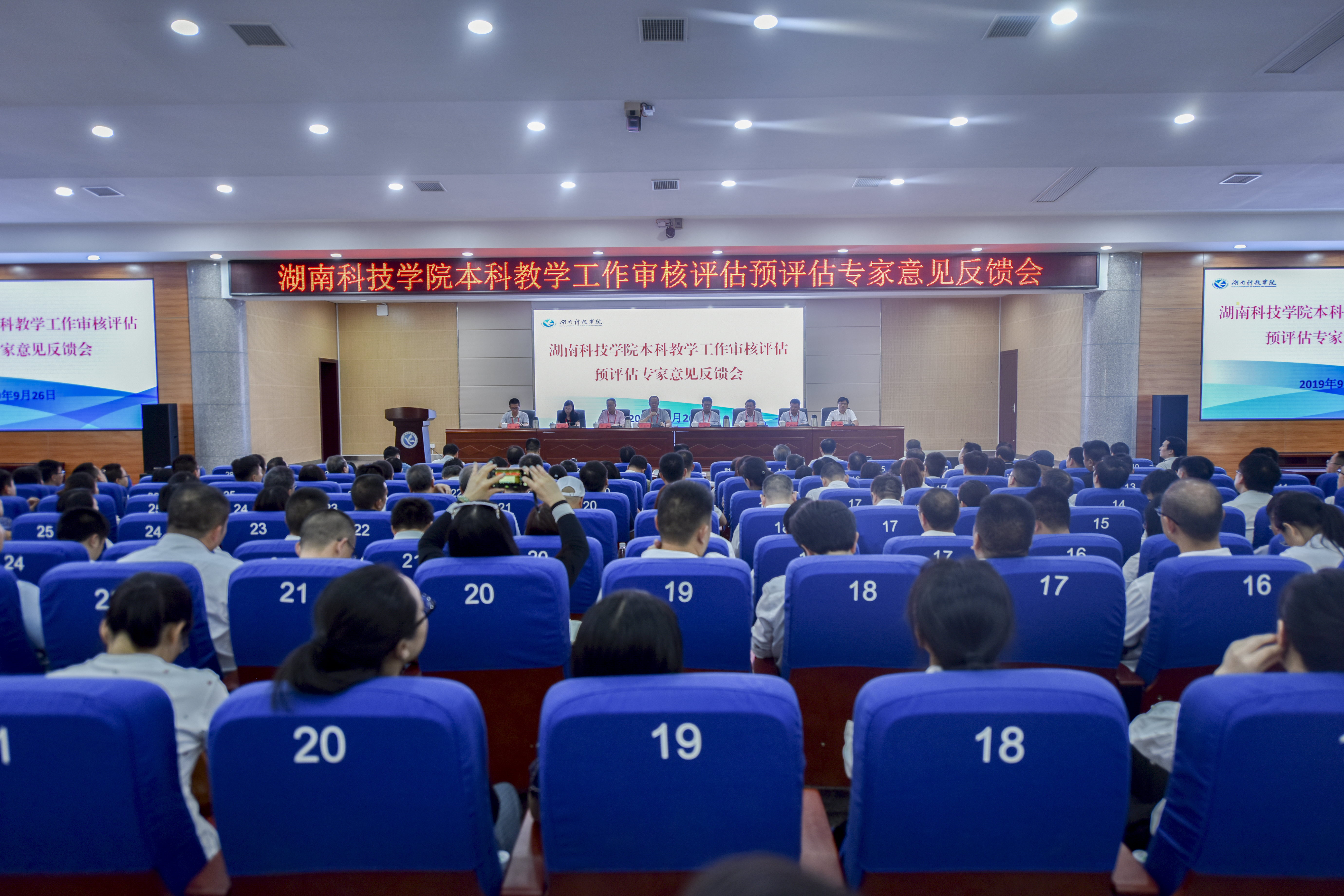 9月26日下午,学校召开本科教学工作审核评估预评估专家意见反馈会。以广西师范大学原教务处处长高金岭为组长的七位专家组成员,党委副书记、校长李钢,校领导宋宏福、彭立威、郑山明、李常健、吴小林、程智开,全校副处以上干部,教务处、教学质量管理处、实验实训中心全体人员,各教学学院教务办主任、教学秘书参加会议。会议由专家组组长高金岭主持。