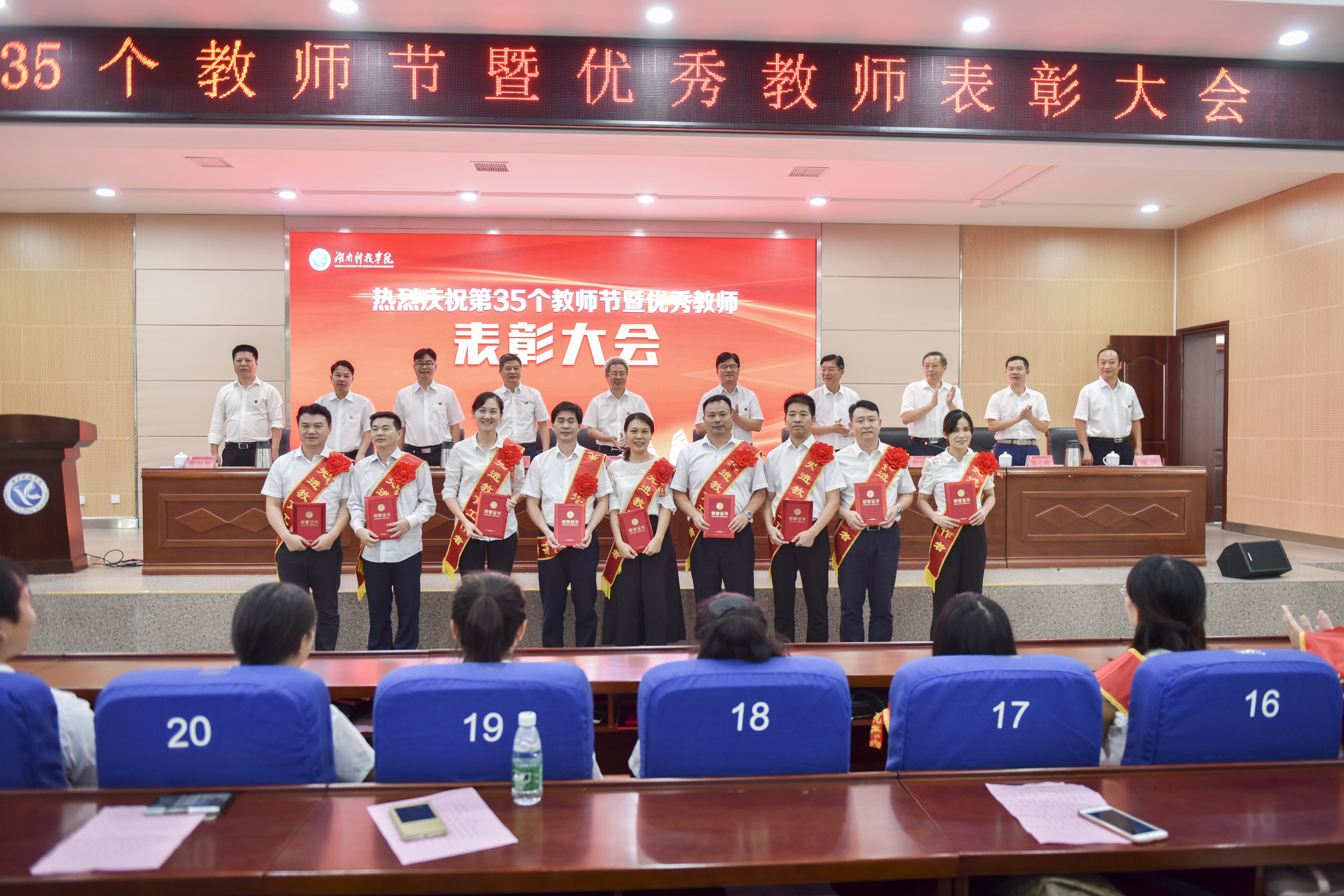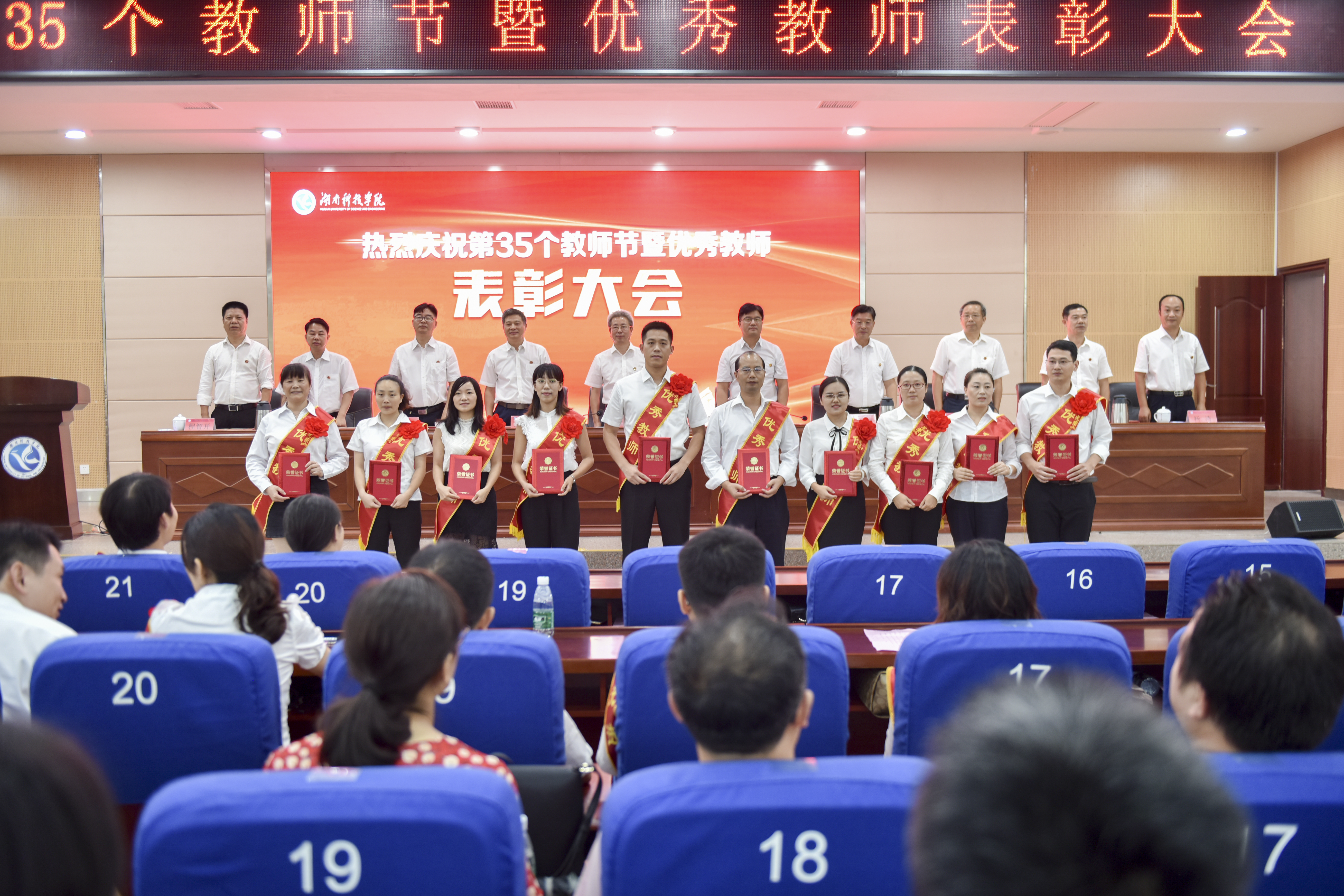 本网讯 910下午,学校在潇湘大讲堂举行35个教师节庆祝表彰大会党委书记曾宝成,党委副书记、校长李钢,校领导唐艳明、宋宏福、彭立威、郑山明、李常健、吴小林、程智开以及教学学院全体教师,机关教辅单位副科级以上干部参加会议会议由郑山明主持。