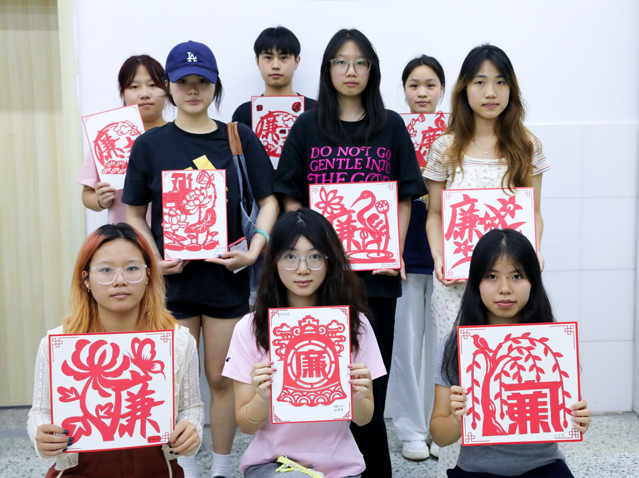 活动中,全体人员集体诵读《爱莲说》,在经典诗文中感受莲花“出淤泥而不染”的高洁品格。传媒学院专任教师刘春侠还现场指导师生进行剪纸创作,师生们围绕“廉洁”“正气”“自律”等主题,以红纸为媒、剪刀为笔,莲花、青竹、梅花等象征清廉的意象跃然纸上,创作出一幅幅寓意深远的剪纸作品。