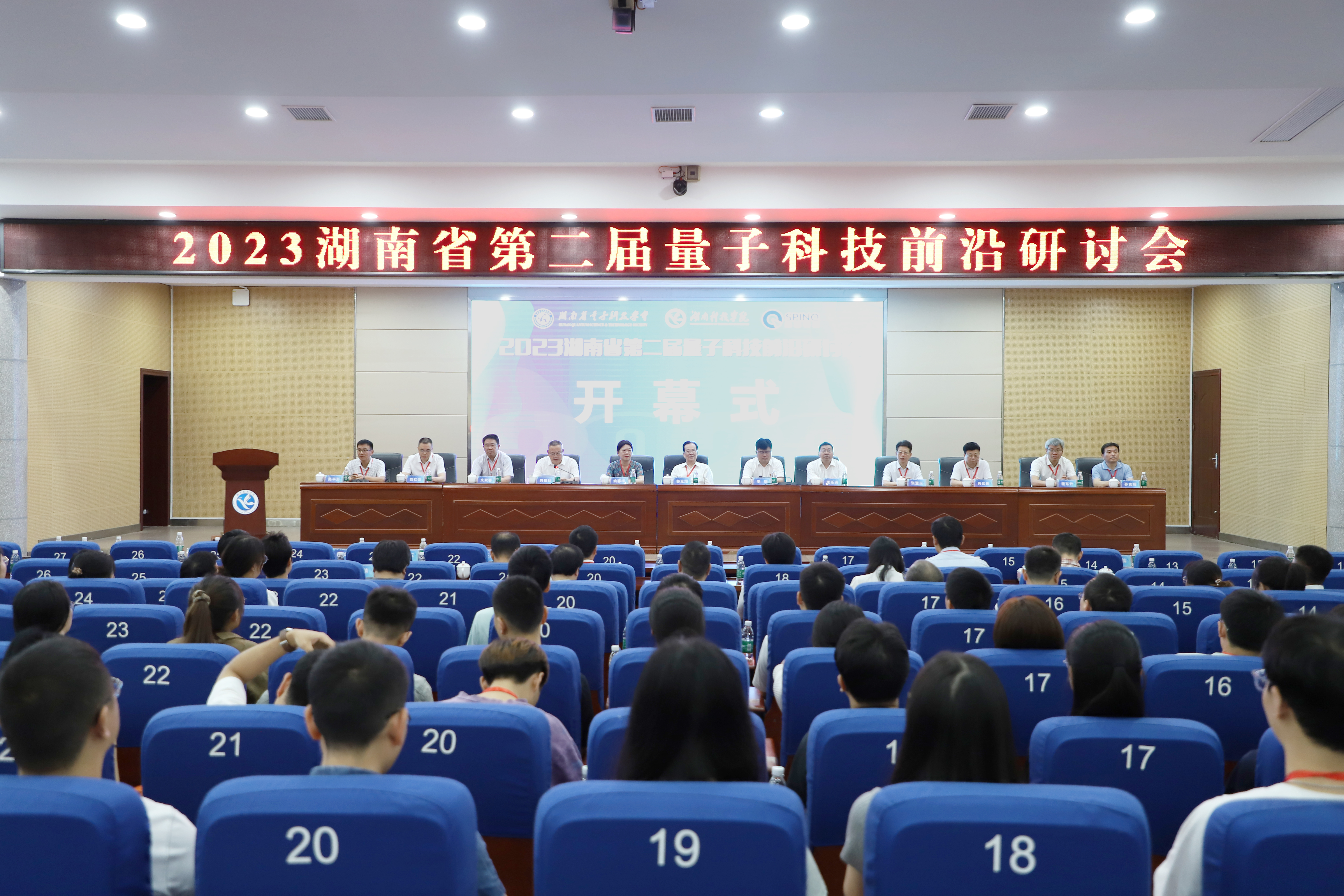 中国科学院院士、中国科学技术大学教授、量子信息学家郭光灿,湖南师范大学纪委书记姚春梅教授,湖南师范大学原副校长、国家杰出青年基金获得者匡乐满教授,衡阳师范学院原副校长张登玉教授,湖南师范大学物理与电子科学学院院长、湖南省量子科技学会理事长、长江学者刘红荣教授,湖南大学物理与微电子科学学院院长、国家杰出青年基金获得者文双春教授,国家杰出青年基金获得者、长沙理工大学肖伏良教授,中南大学物理与电子科学学院院长孙克辉教授,世界杯官网党委副书记、校长李钢,副校长何福林出席会议。