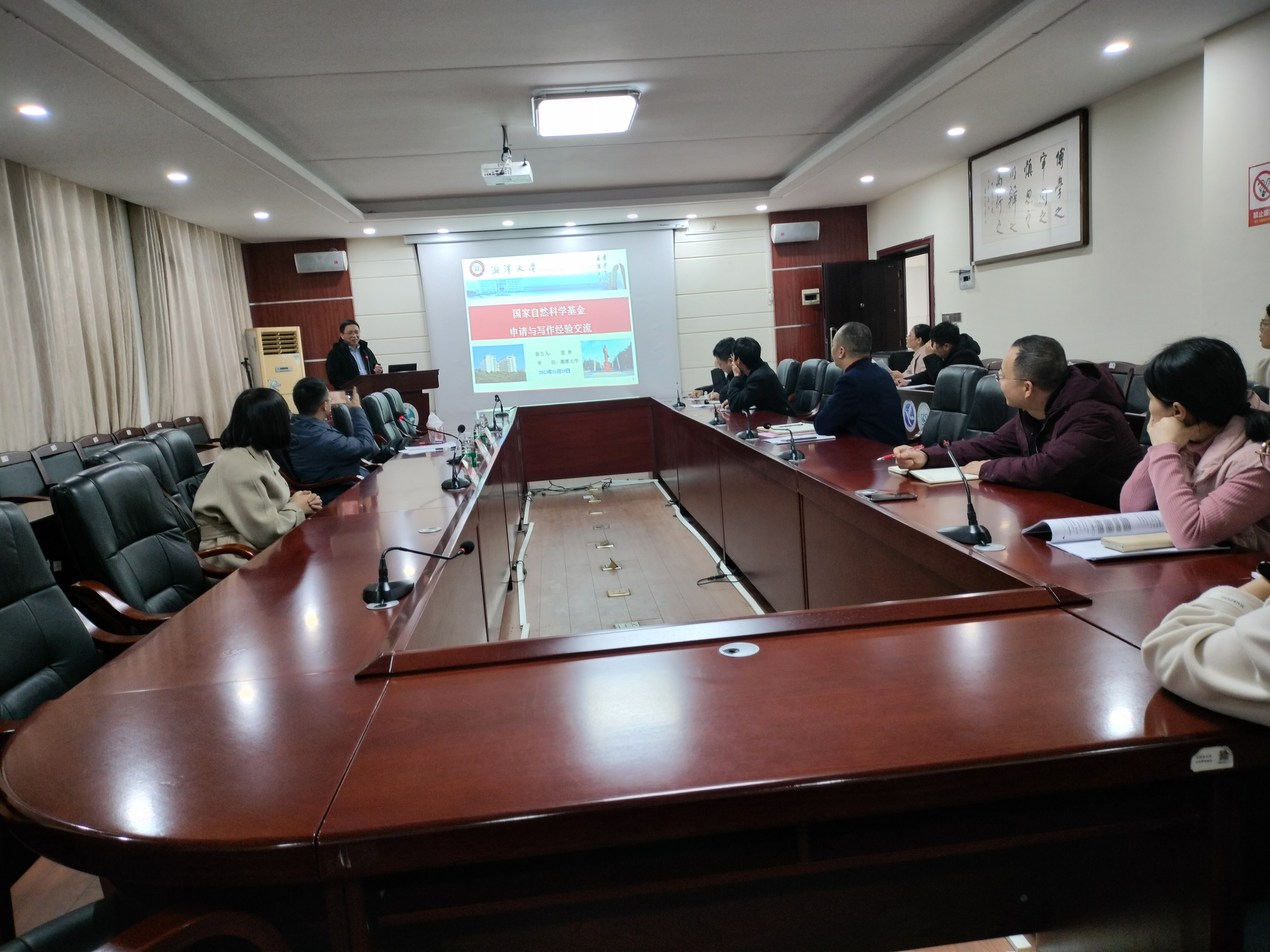 本网讯 11月16日-17日,湘潭大学裴勇教授、南京大学王乐勇教授、湖南农业大学伍树松教授、潘浪教授、叶能辉教授、吴德志教授、湘潭大学汪璞和马忠云副教授等有成功申报和主持多项国家自然科学基金面上、青年项目的专家学者通过线上或线下的方式受邀为世界杯官网教师做国家自然科学基金申请经验分享与交流报告。报告结束后,专家们对世界杯官网明年拟申报基金的教师进行一对一、面对面指导基金写作。会后,参加报告和写作指导会的教师均表示,这种基金申报辅导报告和写作指导针对性强、效果好,对申请国家自然科学基金大有裨益。