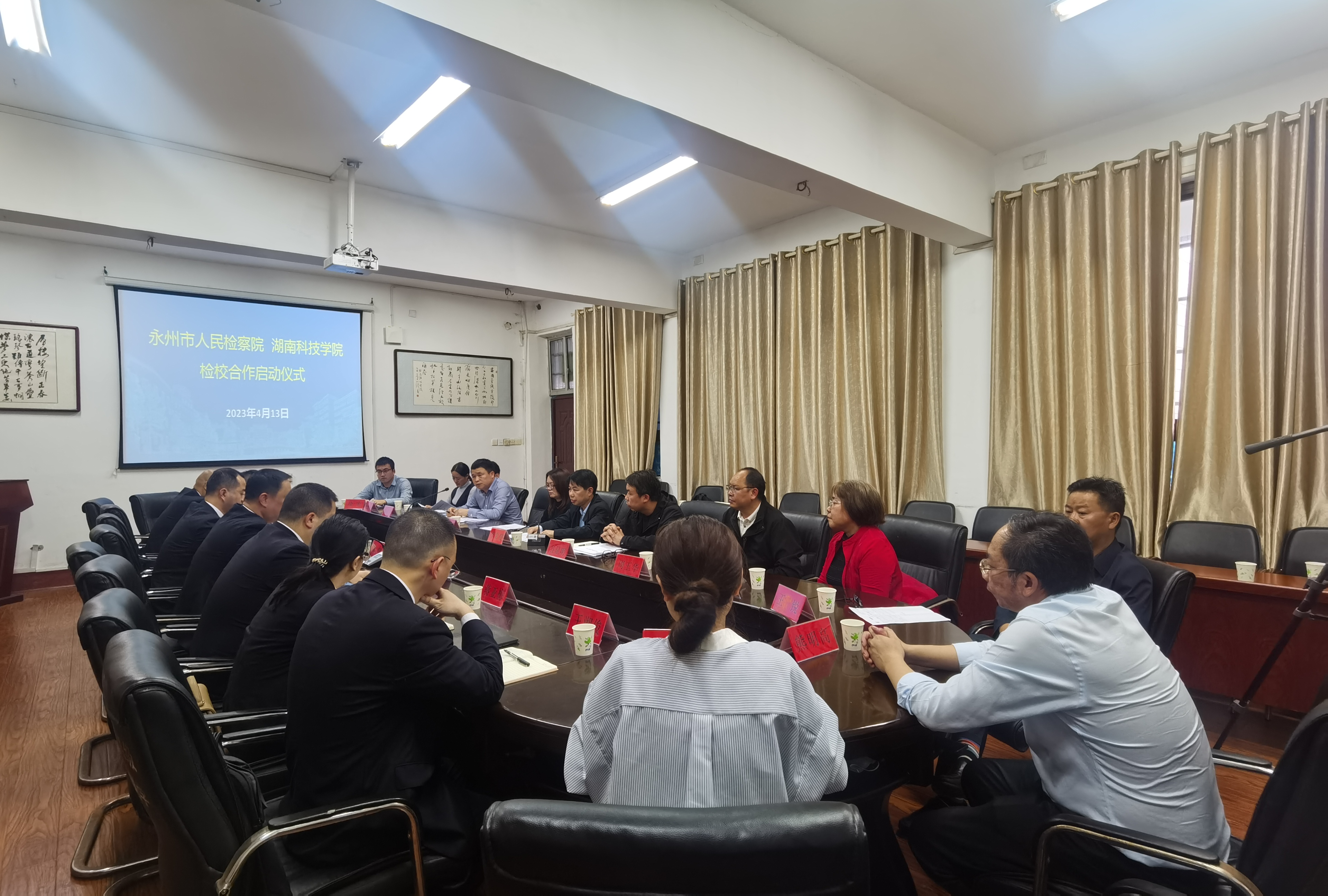 本网讯 4月13日下午,永州市人民检察院与2026世界杯官方合作网站合作启动仪式举行。永州市人民检察院党组成员、副检察长周辉,党委委员、副校长李常健,教务处处长张剑等出席仪式。